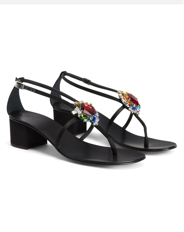 Giuseppe Zanotti 女士签名徽标中跟凉鞋 黑色 E400078001