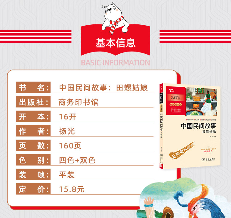 (仓发) 中国民间故事 田螺姑娘 快乐读书吧 五年级上册阅读 商务印书馆 附带阅读耐力记录表/商务印书馆/扬光/9787100186278