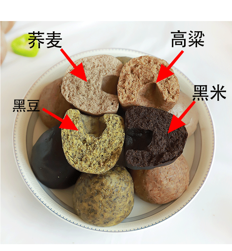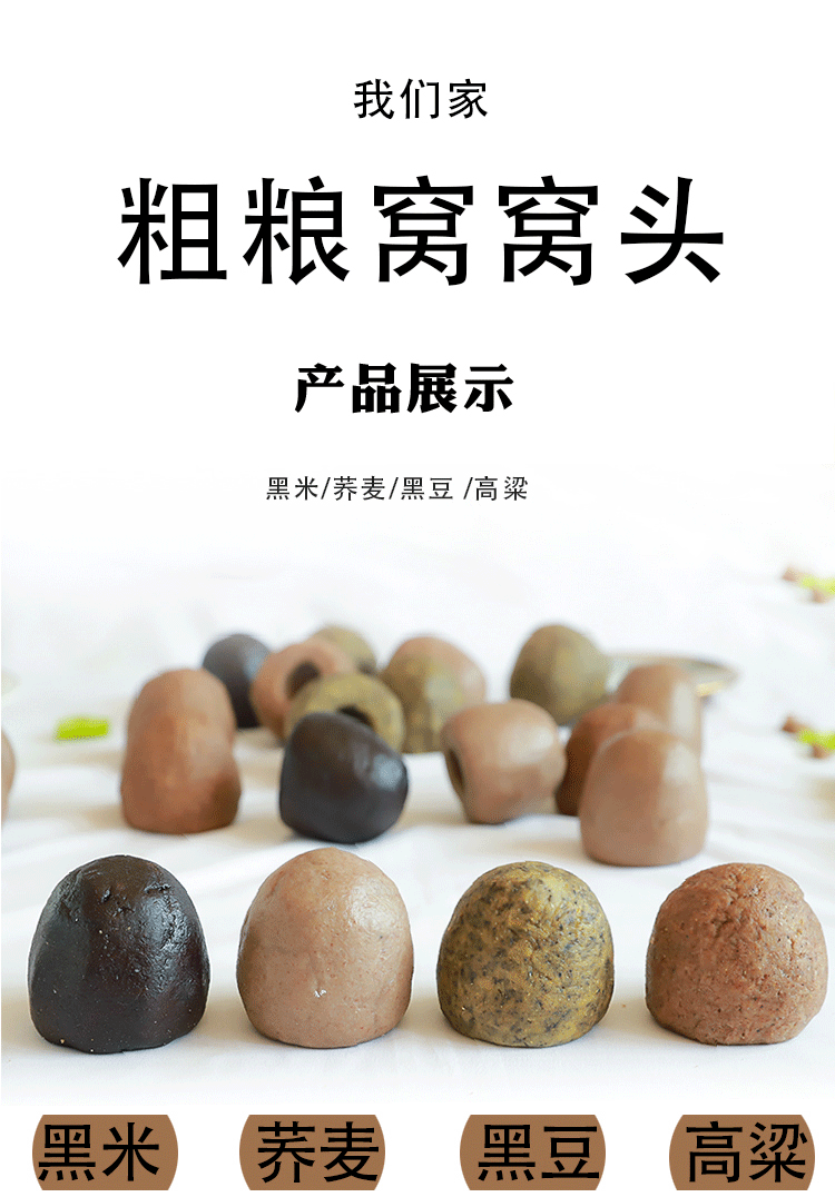 【分仓直发包邮】手工杂粮窝窝头16个(约1.6kg)(荞麦窝头4个+黑米窝头4个+高粱窝头4个+黑豆窝头4个)