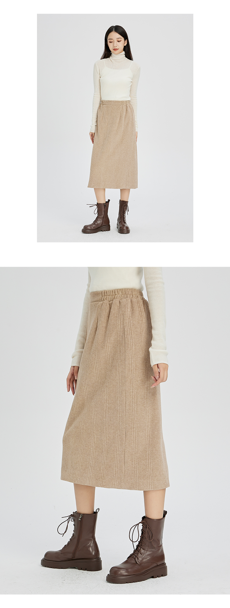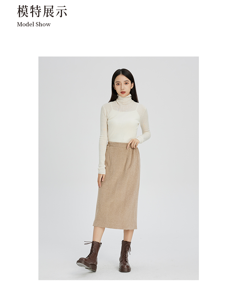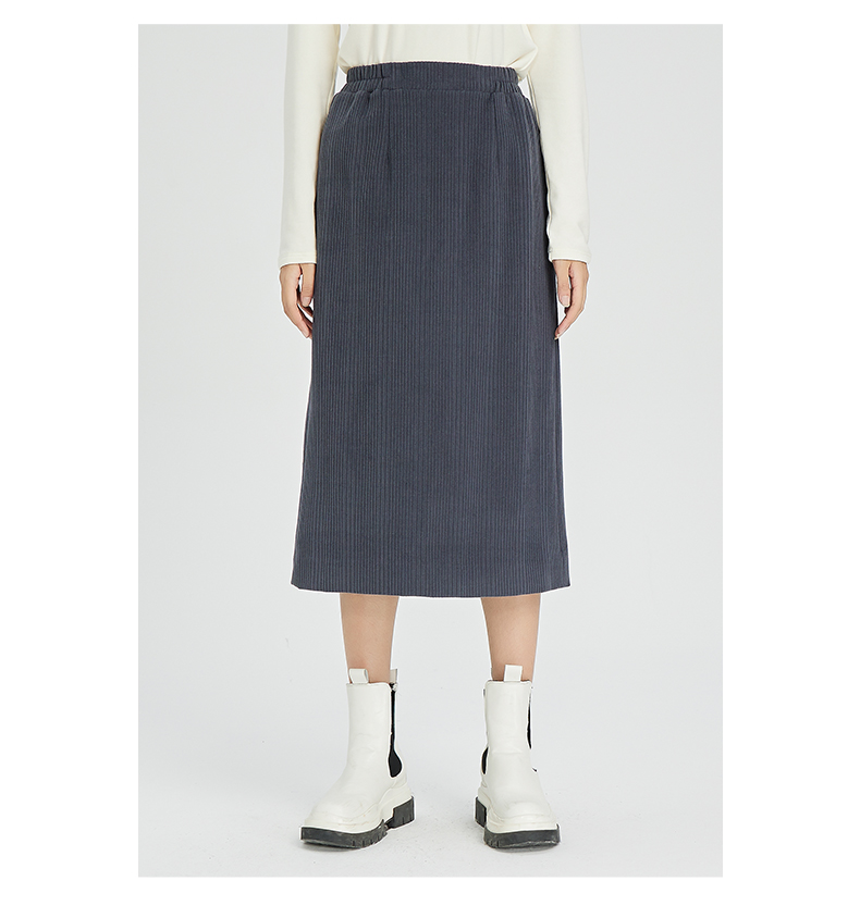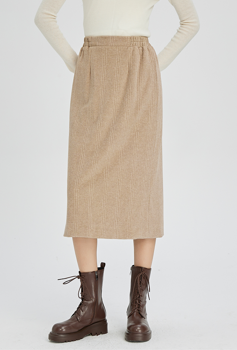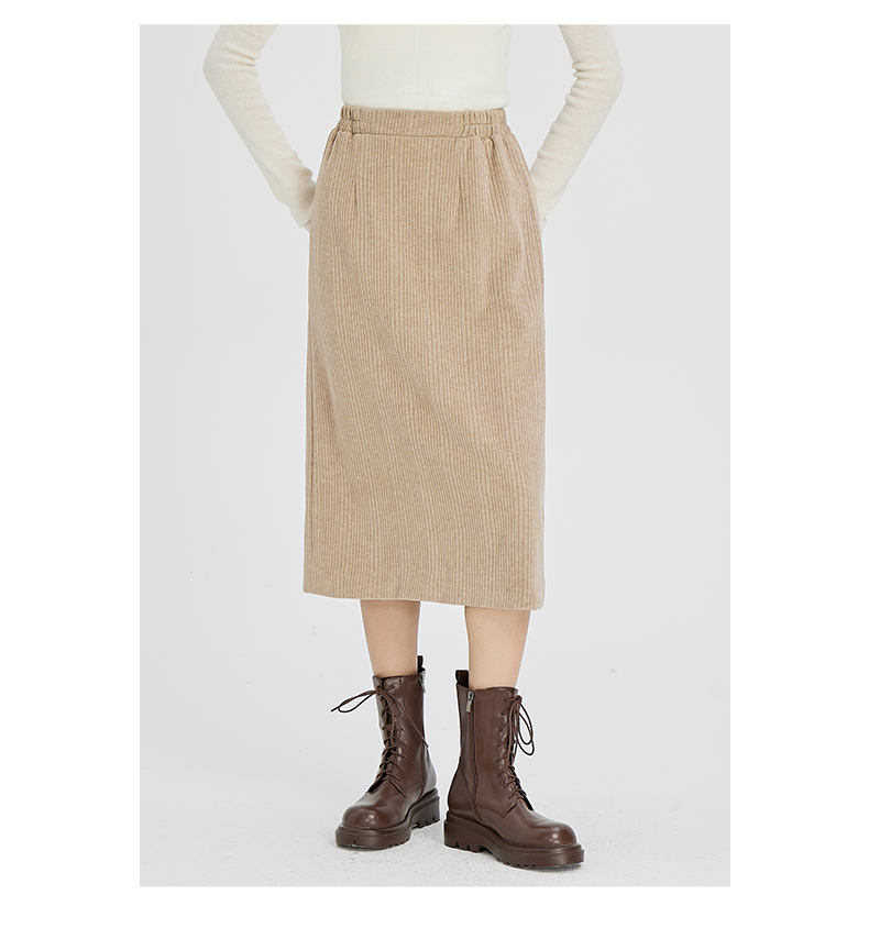 NUTS秋冬款复古简约气质松紧高腰直筒显瘦百搭长裙女241063364B
