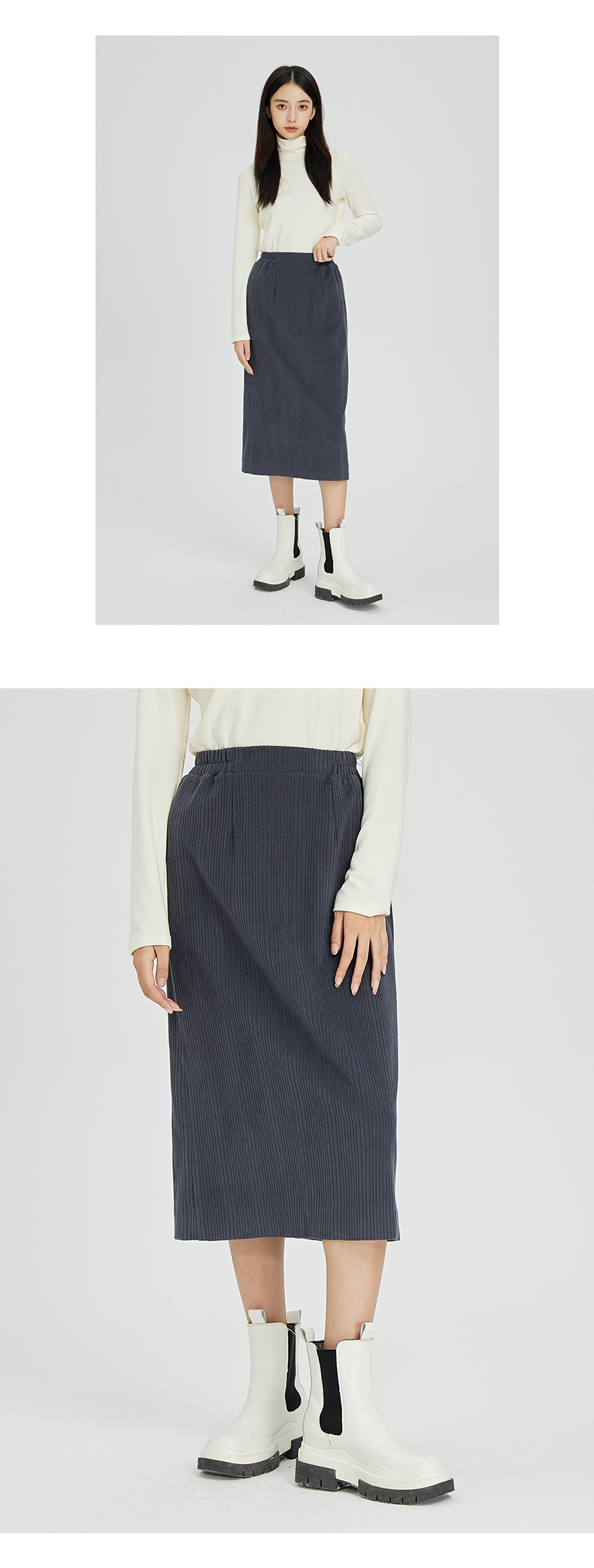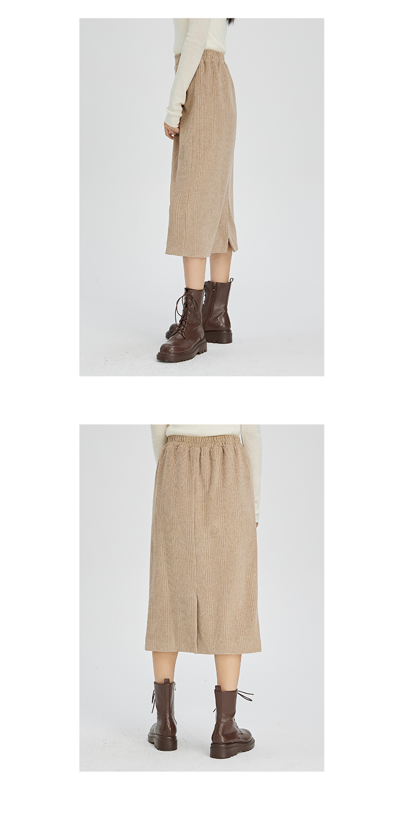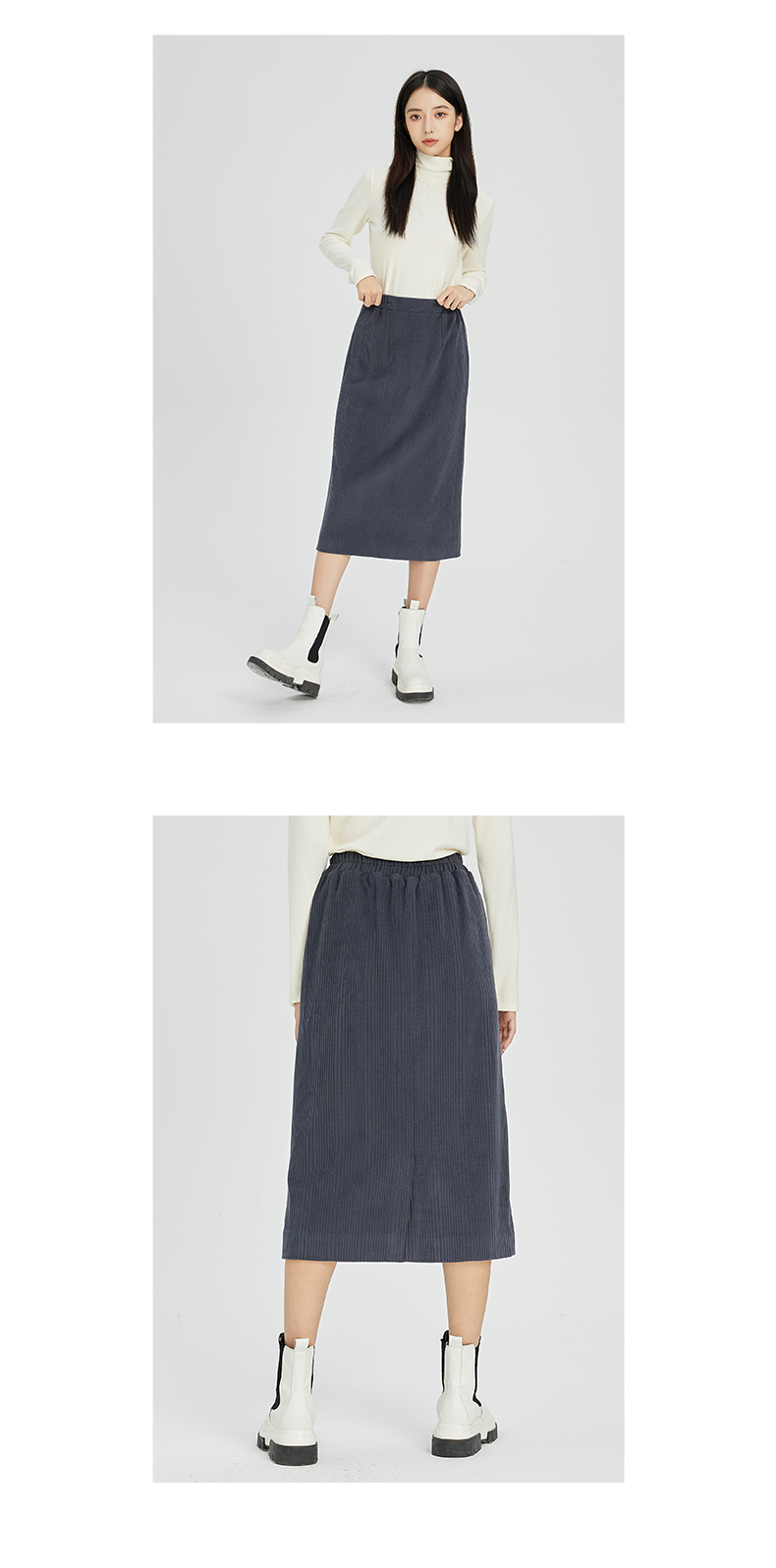 NUTS秋冬款复古简约气质松紧高腰直筒显瘦百搭长裙女241063364B