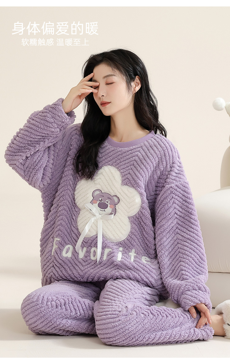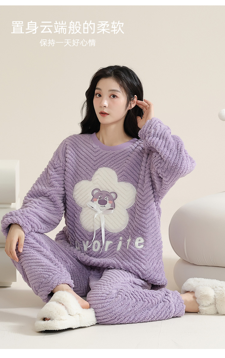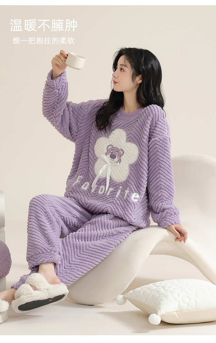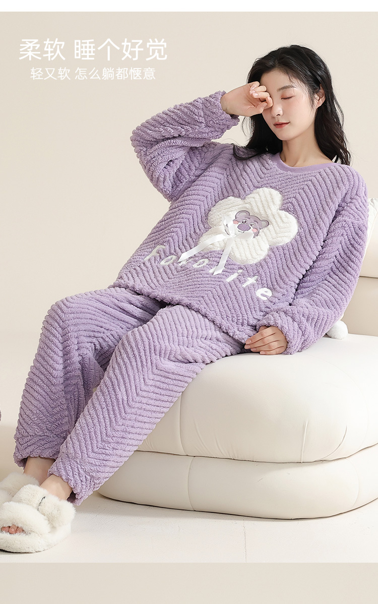 【冬季迎新】洁丽雅正品珊瑚绒圆领睡衣舒适亲肤保暖长袖长裤套装