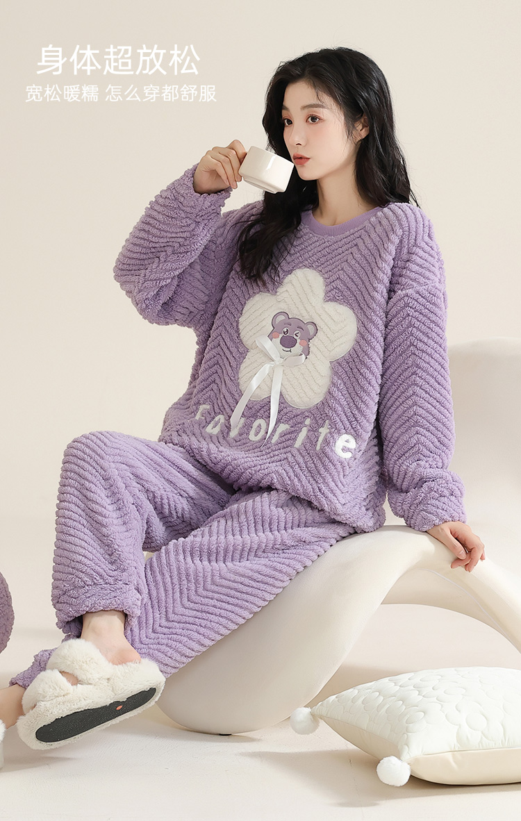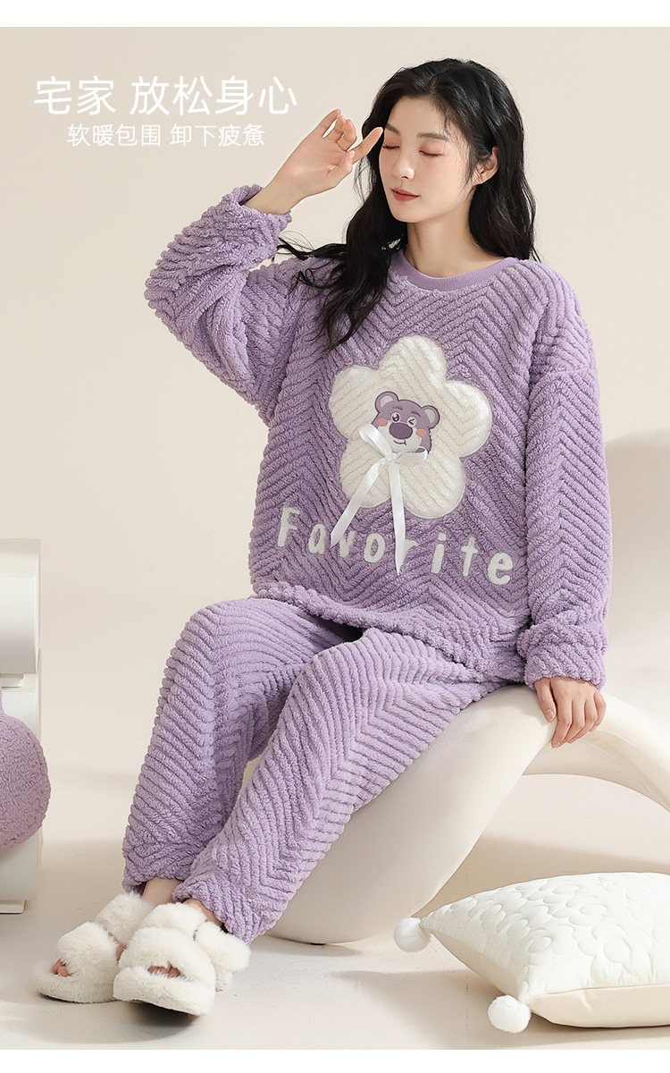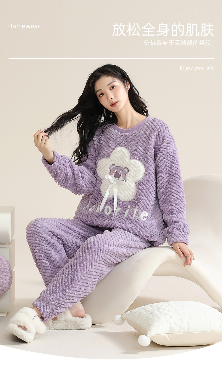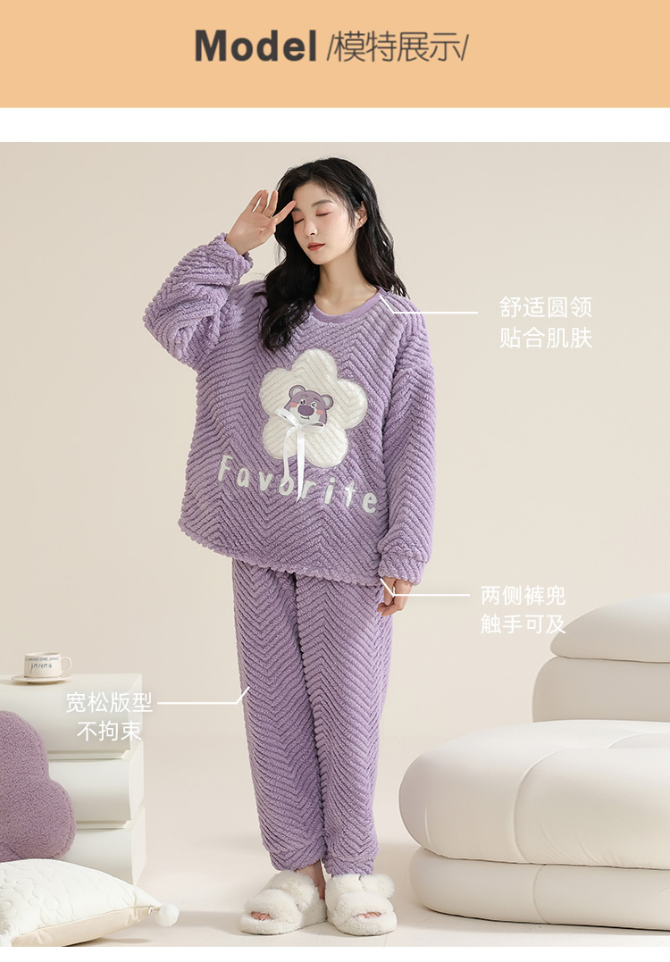 【冬季迎新】洁丽雅正品珊瑚绒圆领睡衣舒适亲肤保暖长袖长裤套装