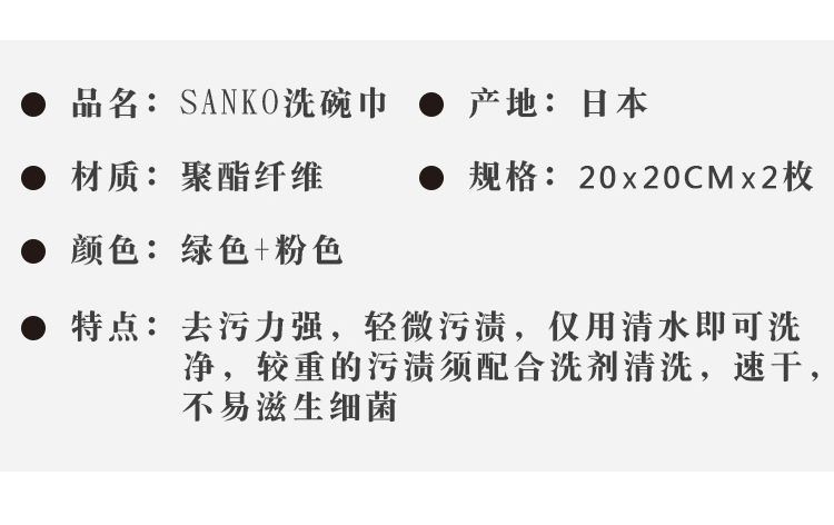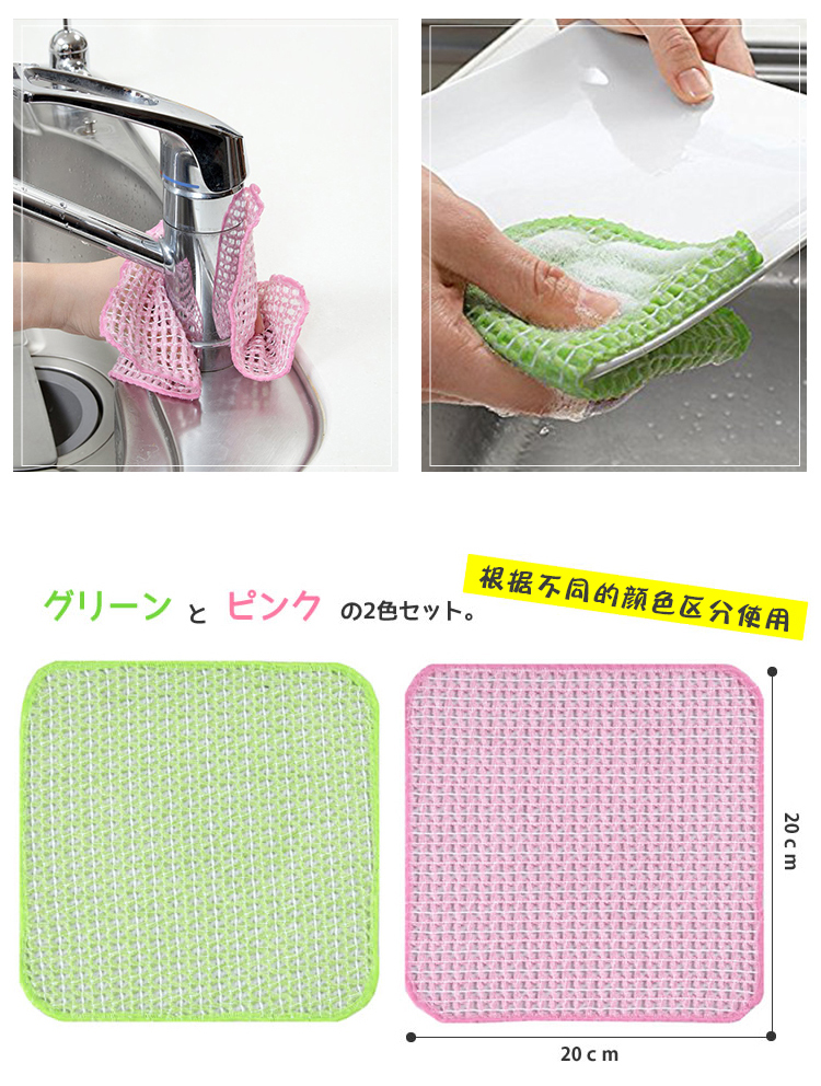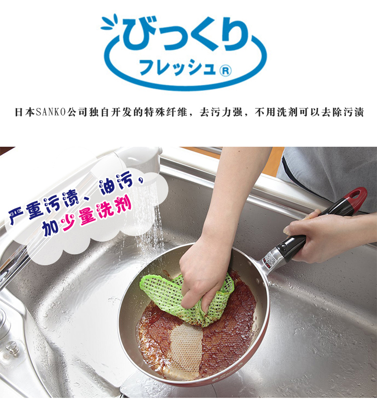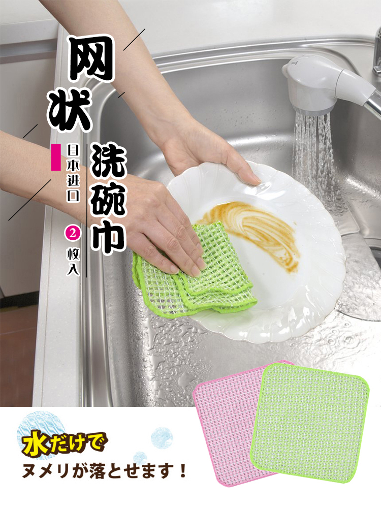 日本进口网状洗碗巾SANKO家务清洁布刷碗巾强力去污速干实惠2枚入 WHJC
