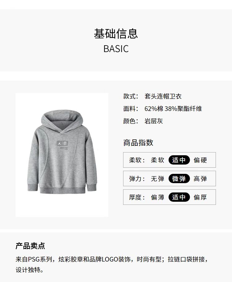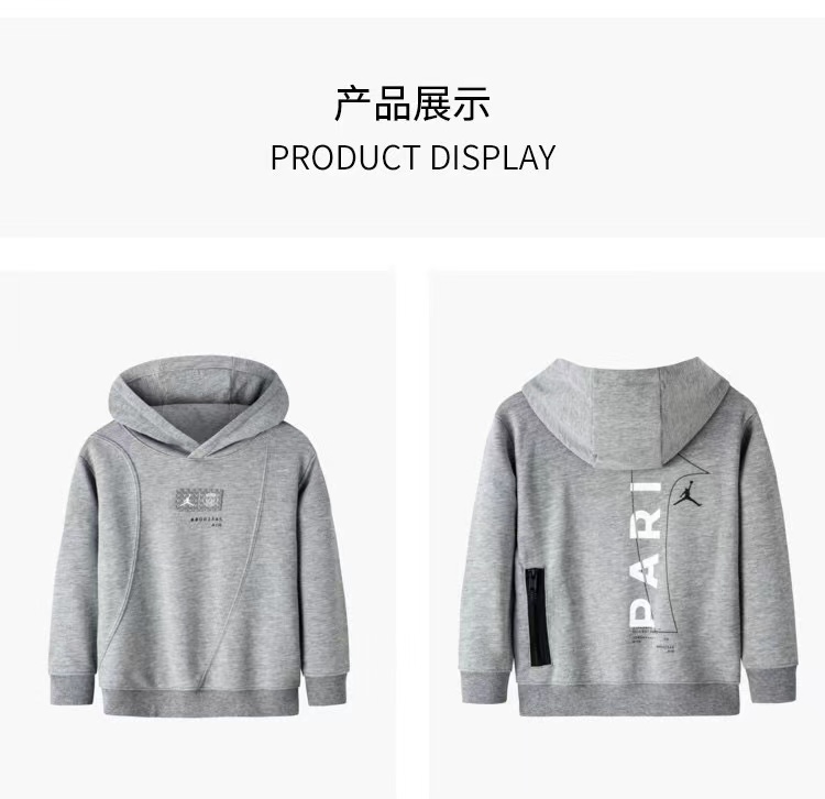 乔丹童衣春秋新款男童女童大巴黎系列毛圈连帽卫衣JD2232014