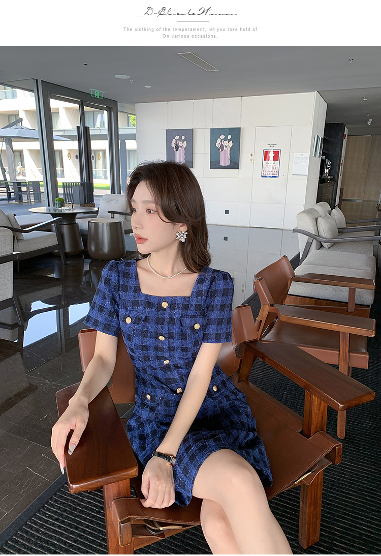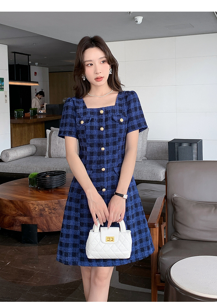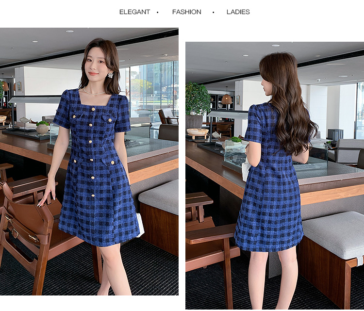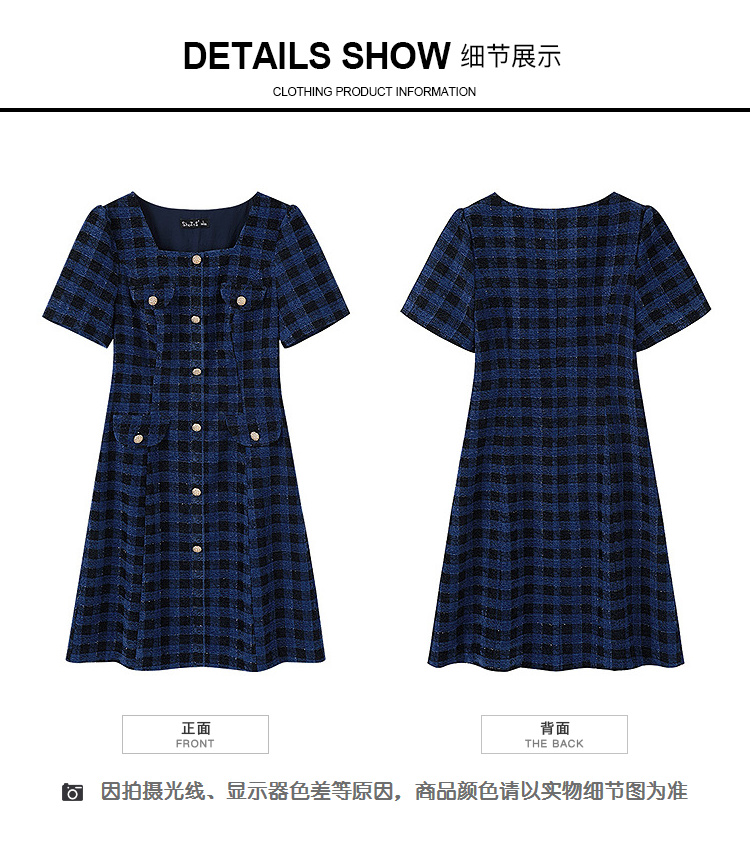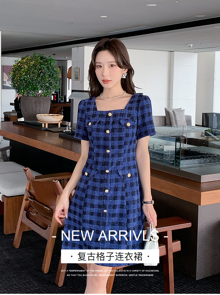 奢姿大码女装2025新款夏季胖妹妹法式收腰复古格子通勤气质连衣裙9952853136