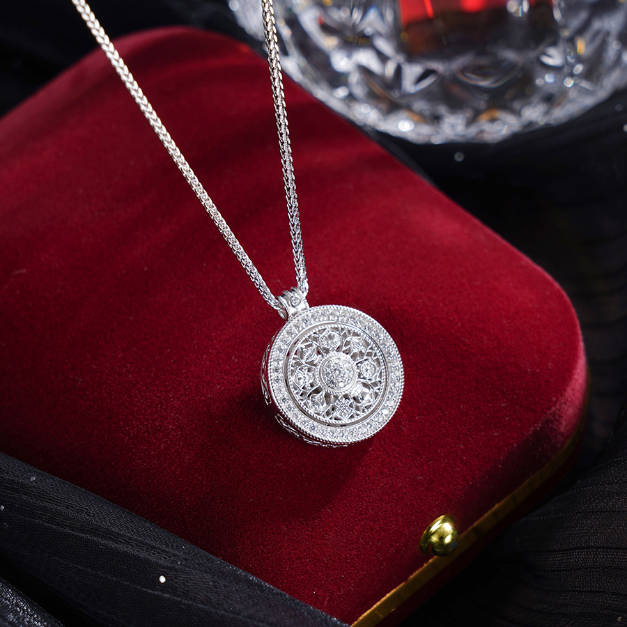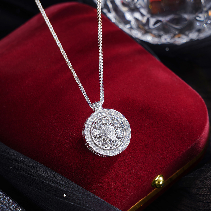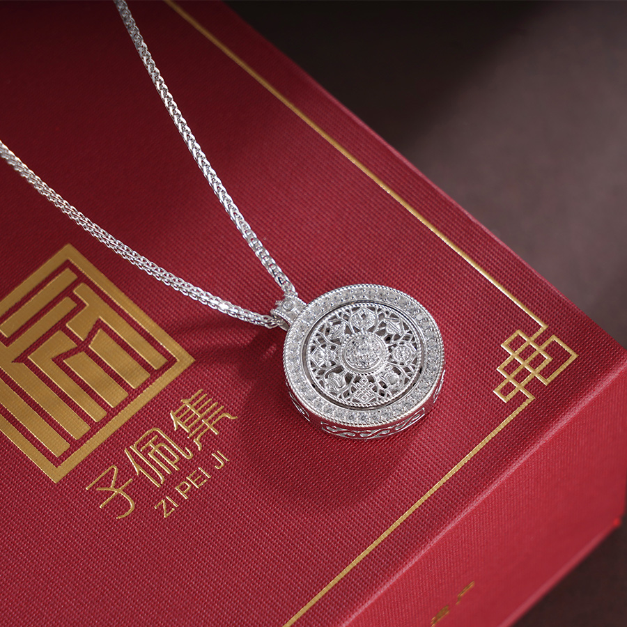 【寓意】:以锆石搭配纯银,八宝图纹巧嵌其间,"祥瑞常伴,福寿宁安"的吉愿,皆藏于银辉流转的方寸微光。