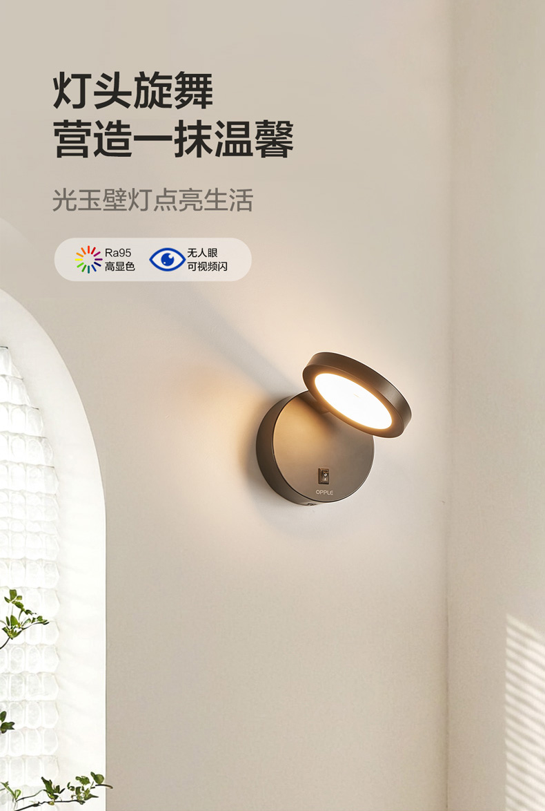 欧普(OPPLE)壁灯LED高显色田园现代中式卧室床头过道走廊温馨墙灯光玉
