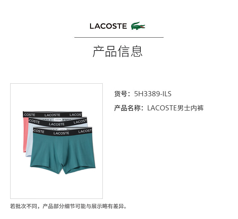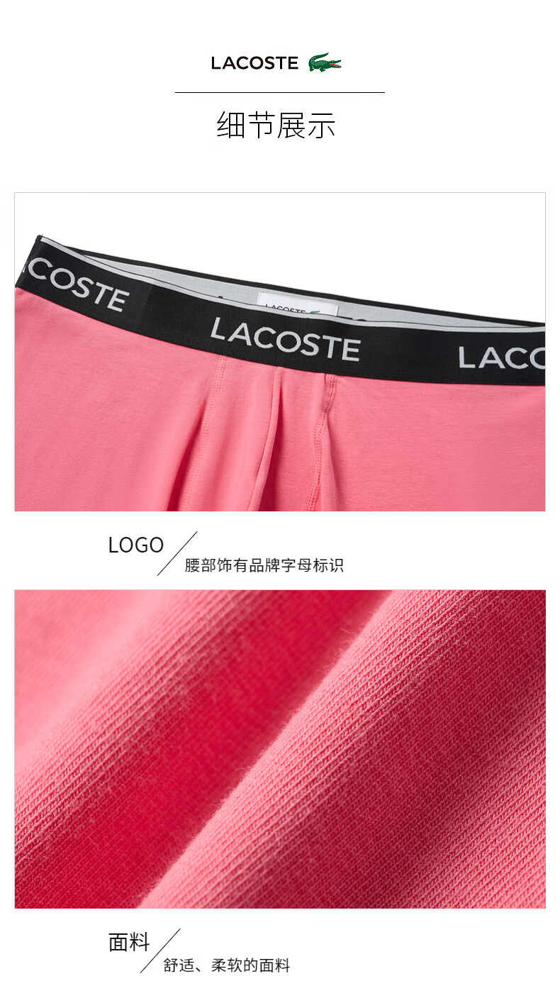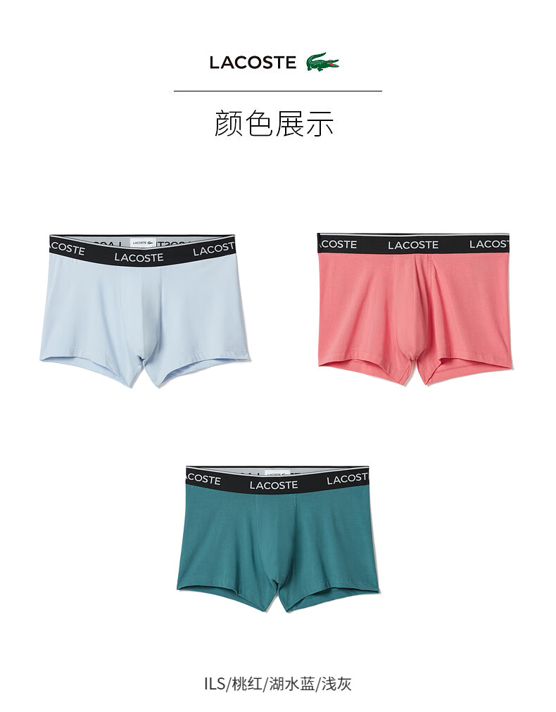 Lacoste法国鳄鱼男装新款透气舒适3条装平角内裤5H3389-10