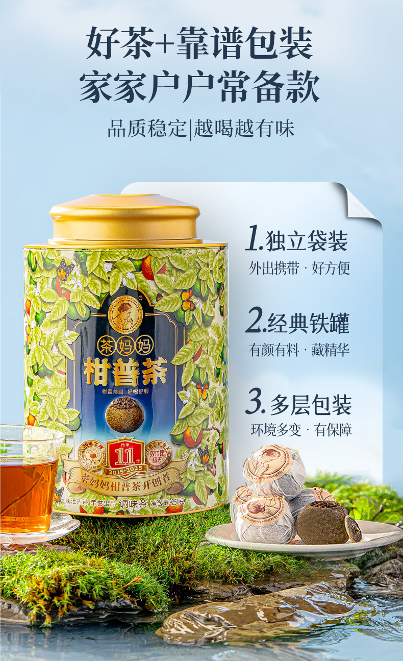 澜沧古茶2025年茶妈妈小青柑新会陈皮普洱熟茶柑普茶250g