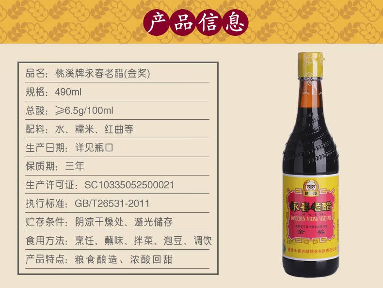 桃溪永春老醋*2瓶(490ml/瓶)生产日期: 9月