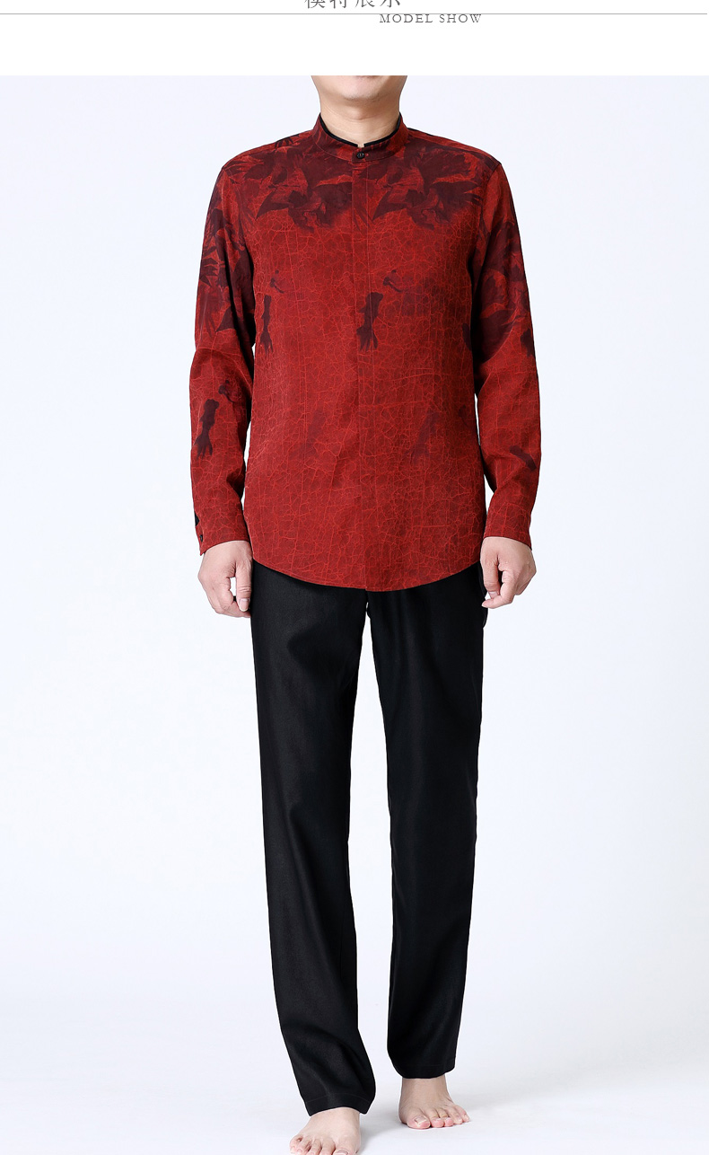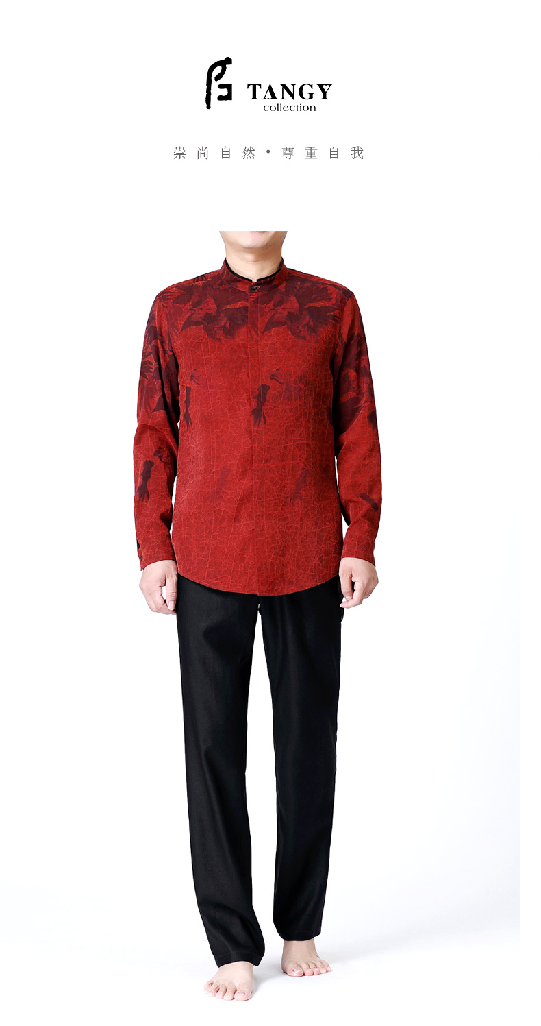 TANGY Collection/天意精品春夏新品鱼悦系列男士红莨印染长袖衬衫