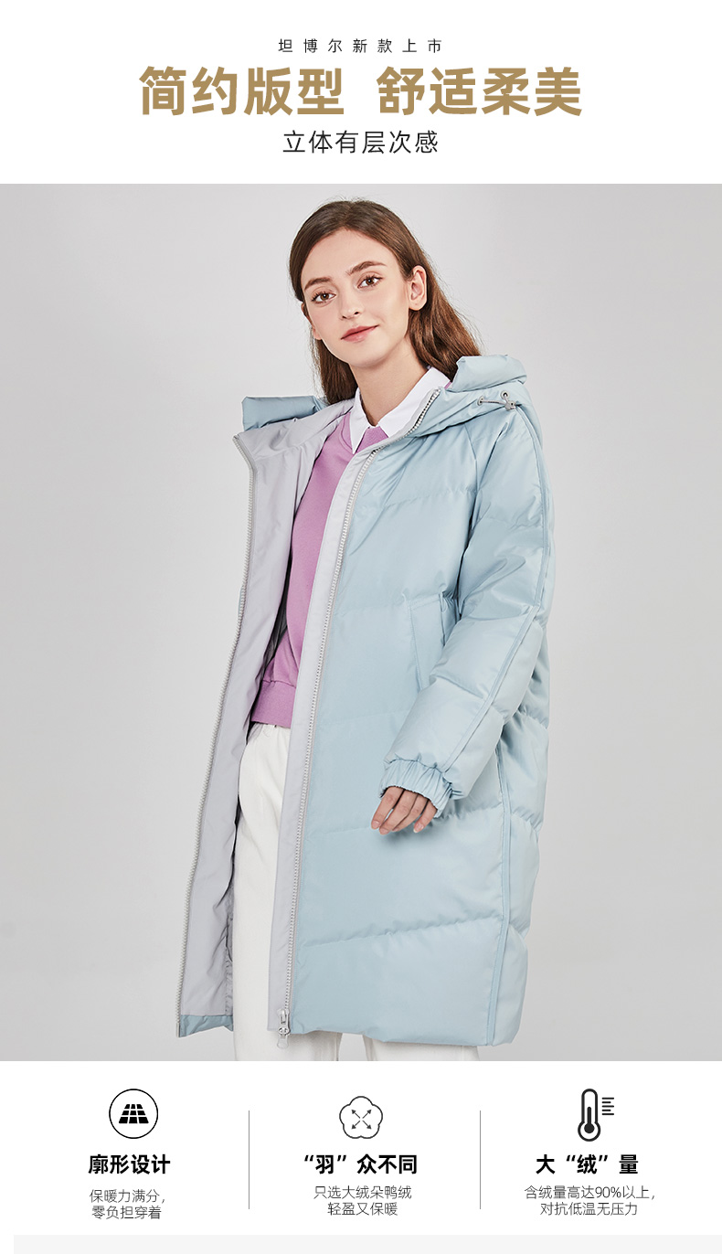 TD19620坦博尔2019新品羽绒女士中长款时尚连帽潮流保暖韩冬外套