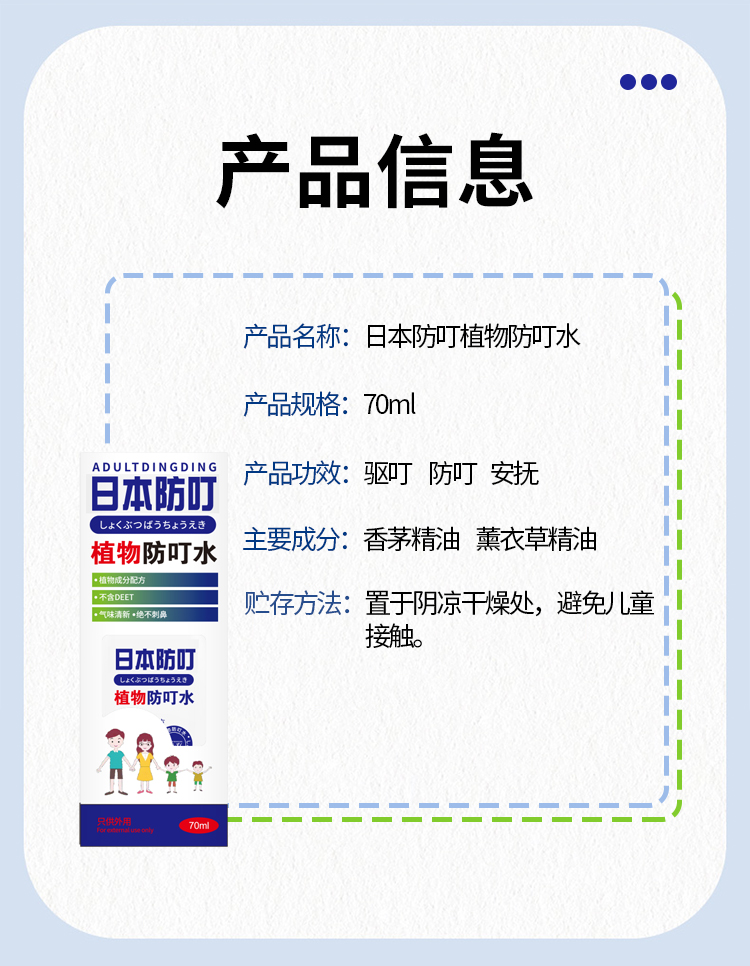 【日本叮叮】防蚊虫叮咬神器 喷雾便携花露水 植物防叮水70ml -FN