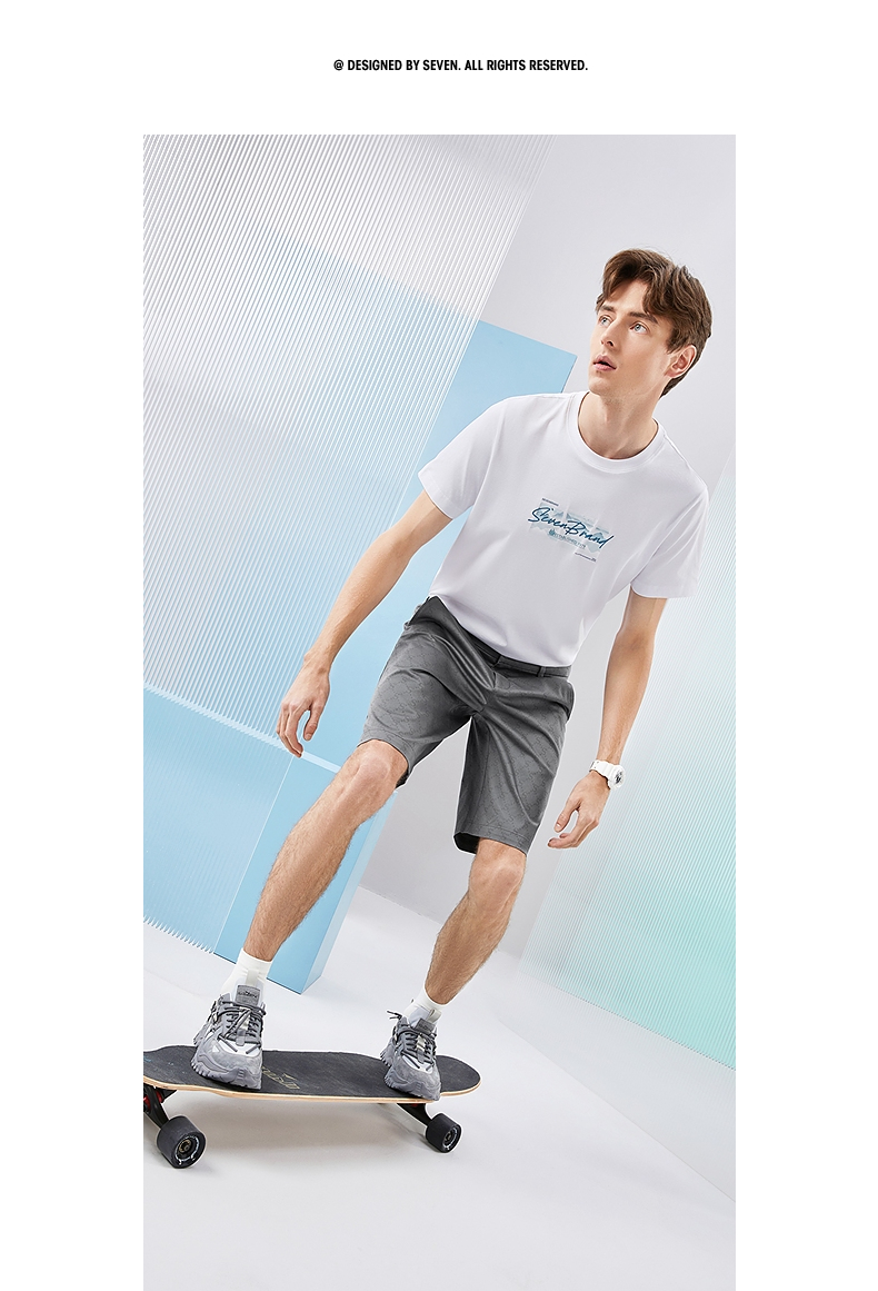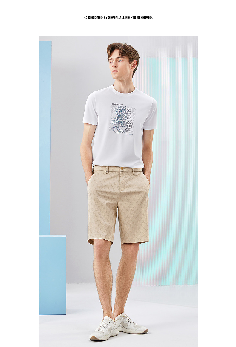 【含莱赛尔】柒牌短裤男士2024夏季新款时尚潮流字母满印直筒裤子 126H72770