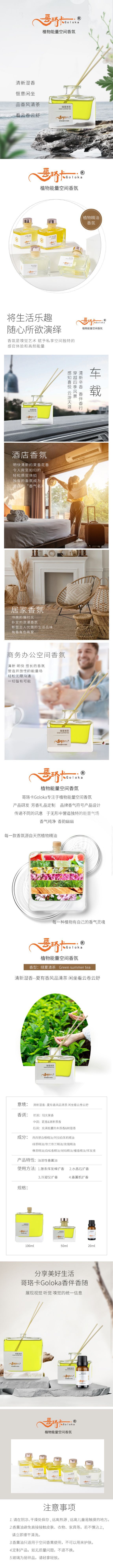 绿夏清茶香薰油 无火香薰精油 哥珞卡植物香氛家用室内车载香薰