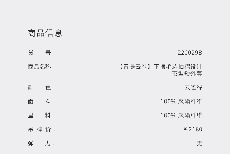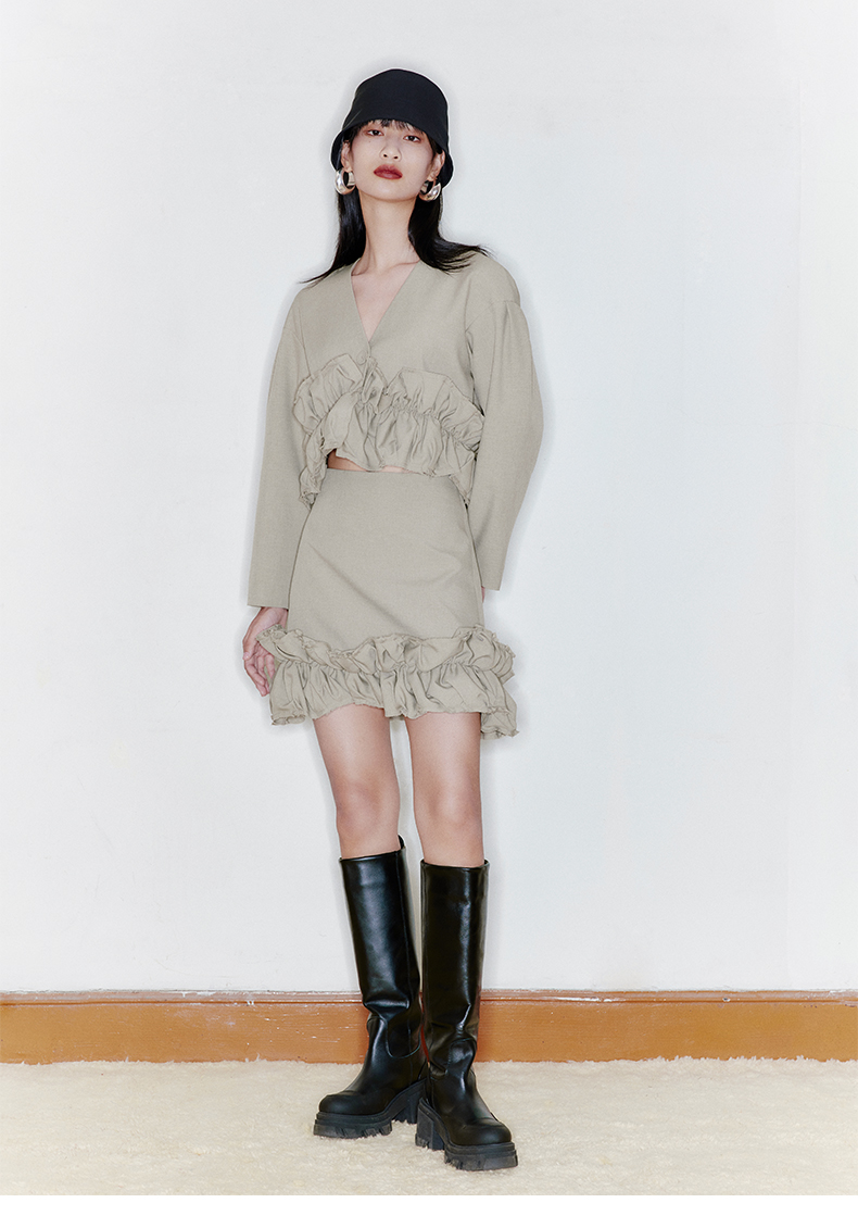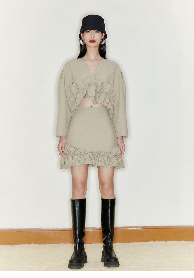 【青提云卷】下摆毛边抽褶设计茧型短外套220029B