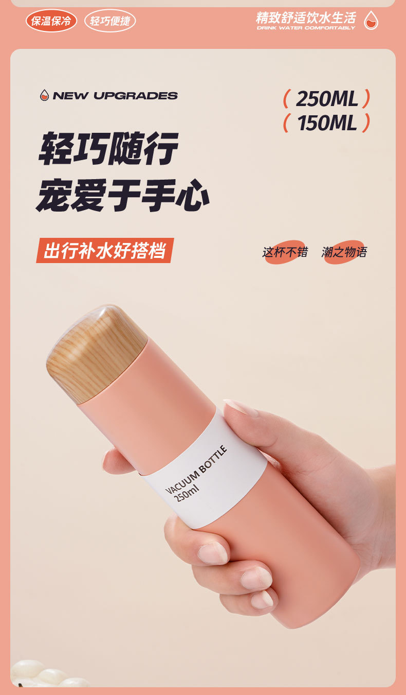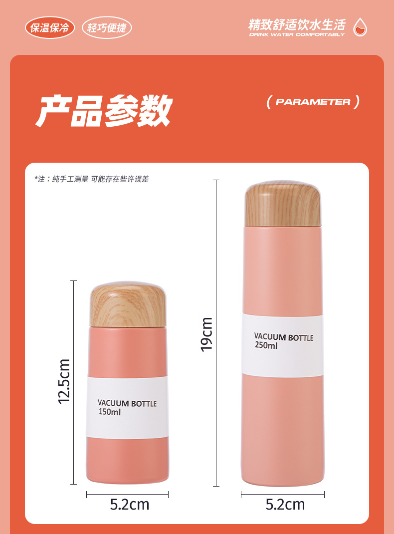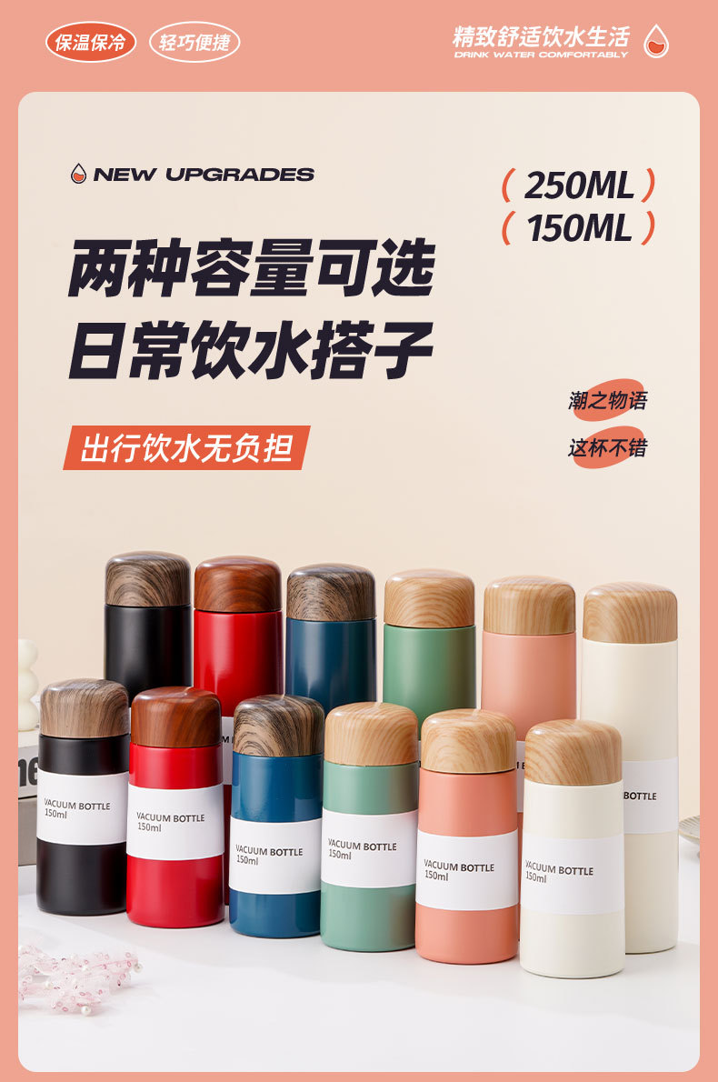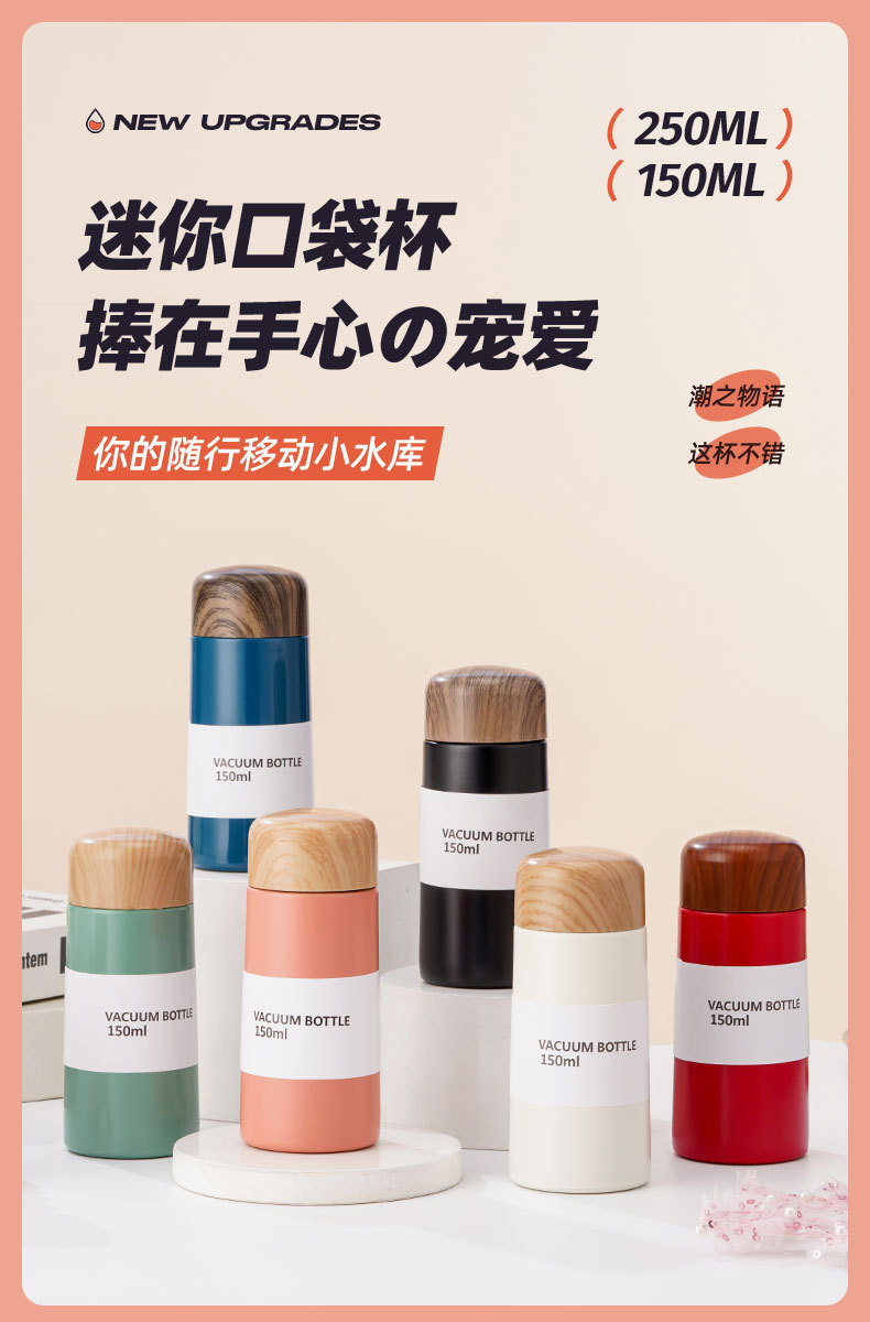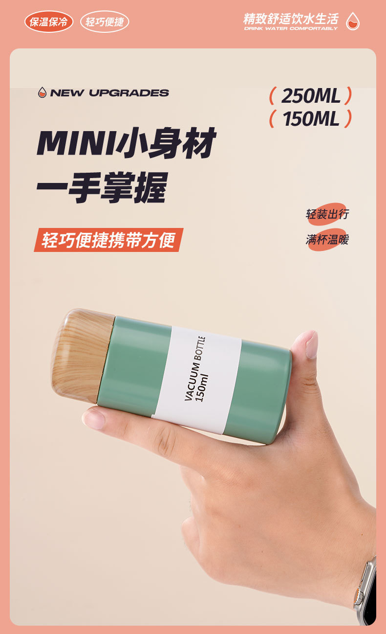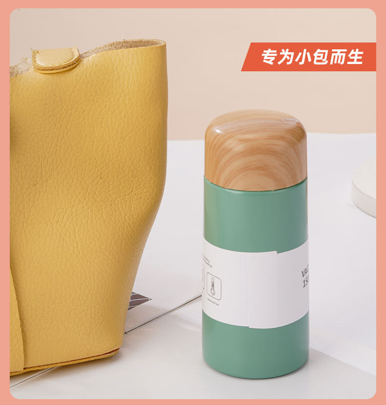 【日常饮水304不锈钢保温杯】小巧便携学生情侣水杯 女高颜值木纹迷你口袋杯