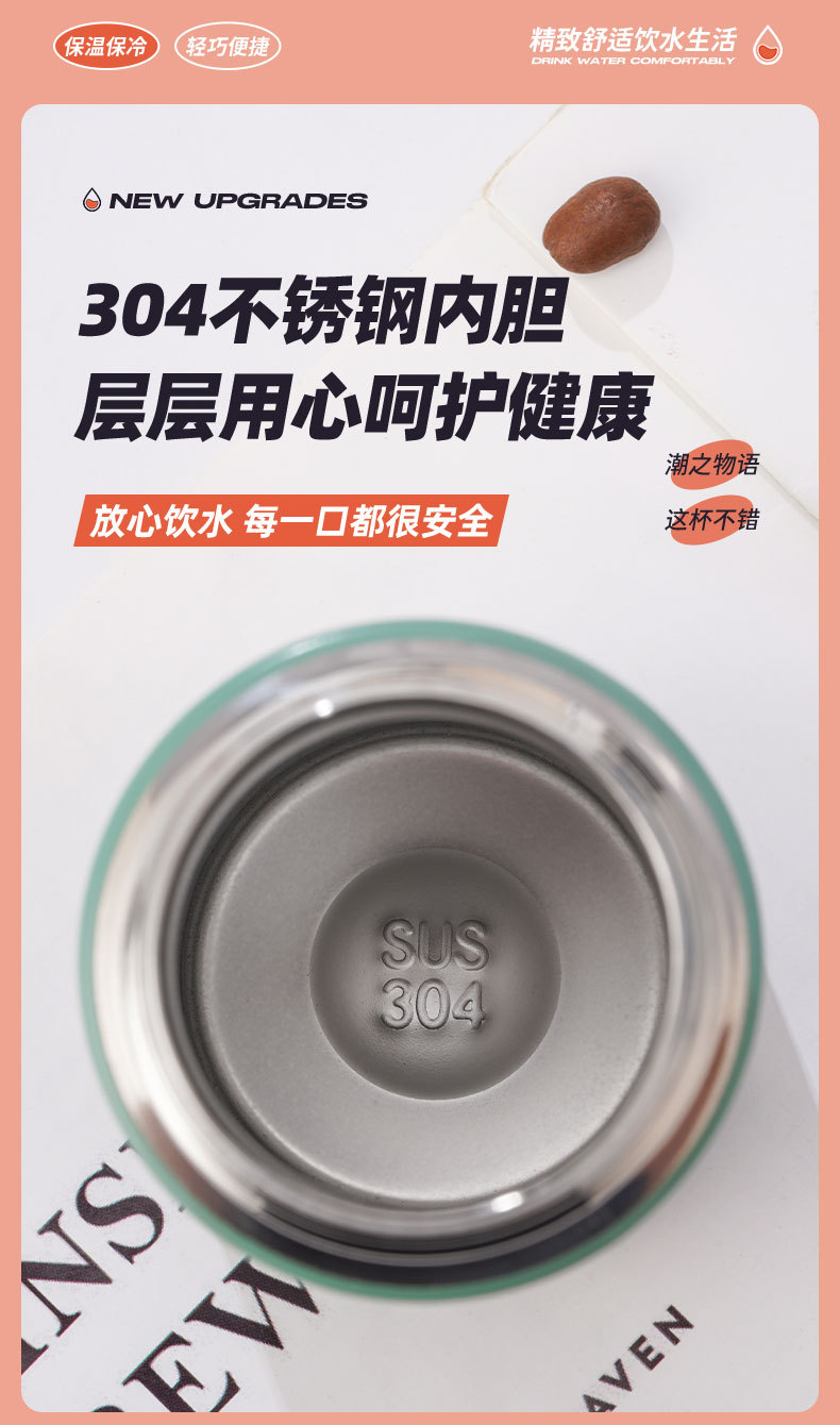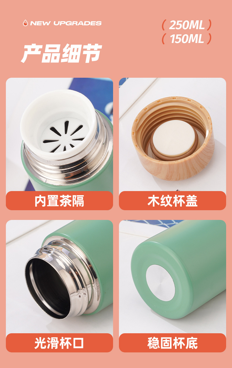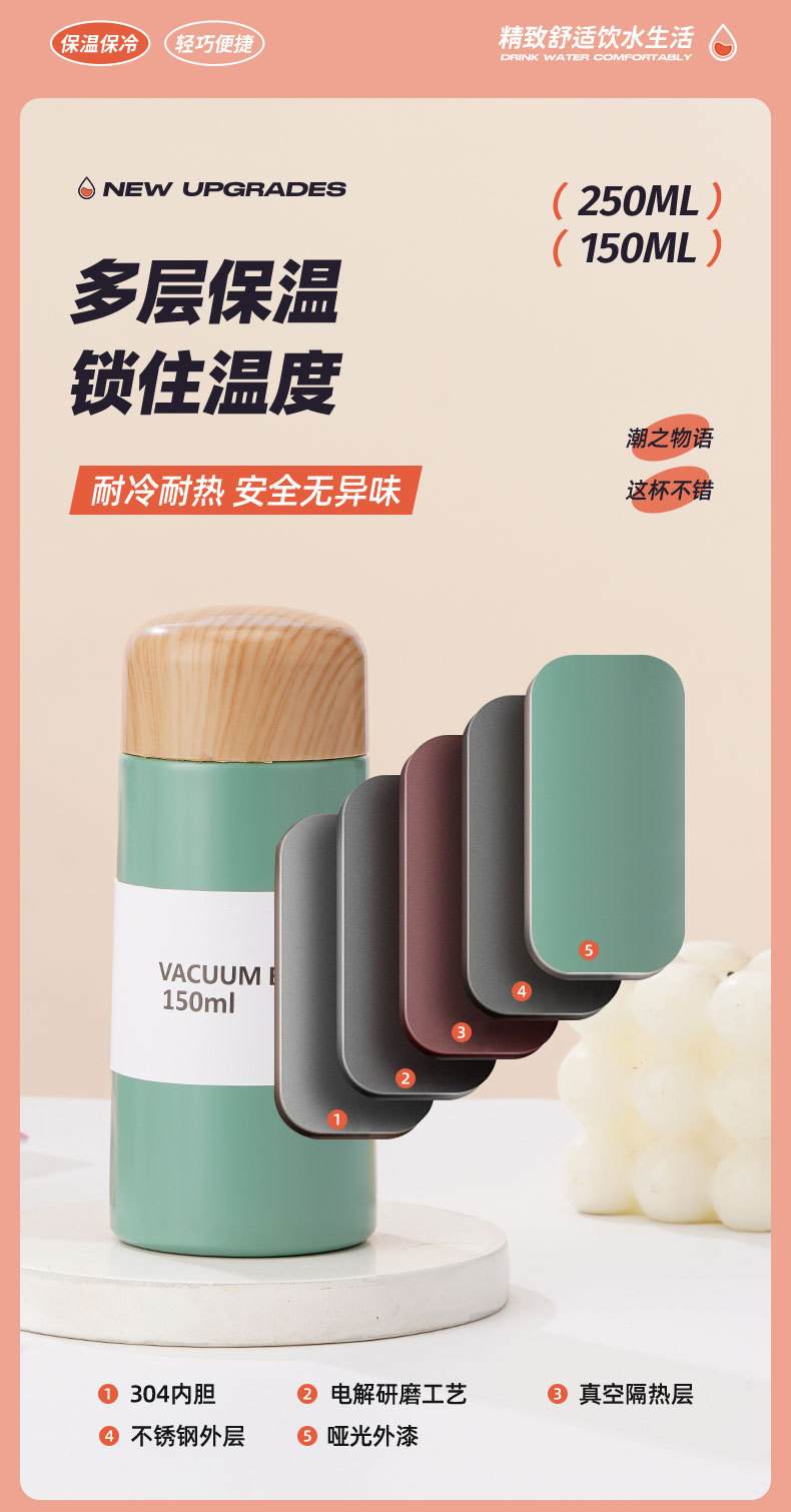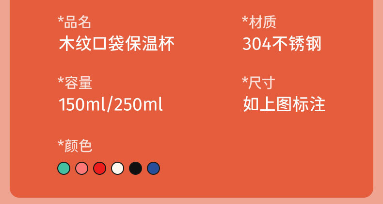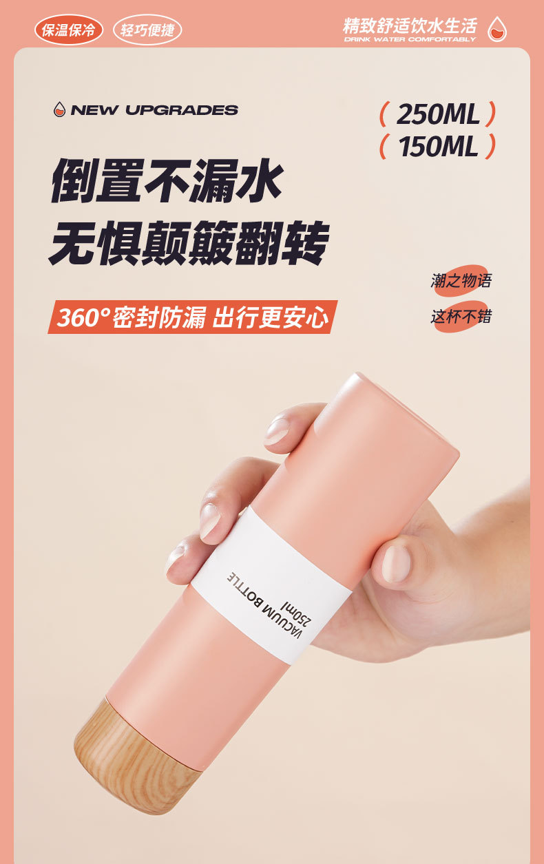 【日常饮水304不锈钢保温杯】小巧便携学生情侣水杯 女高颜值木纹迷你口袋杯