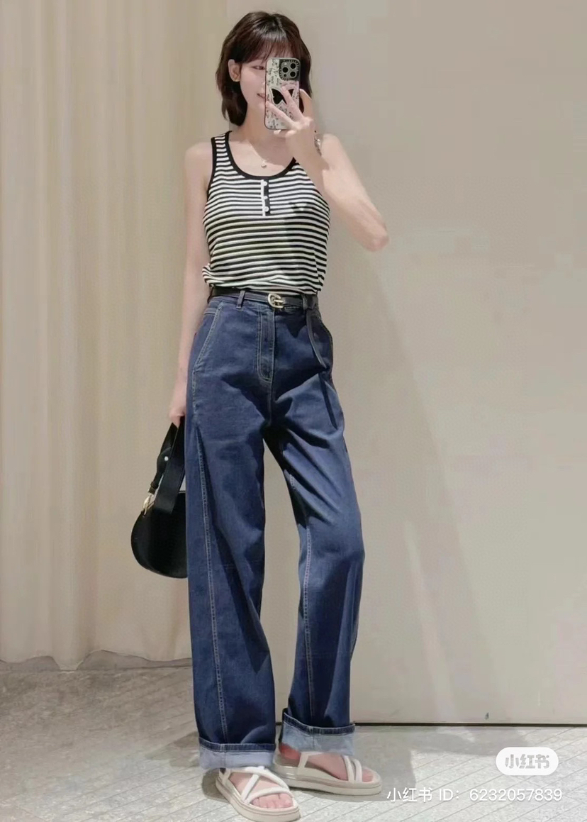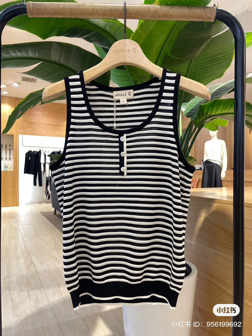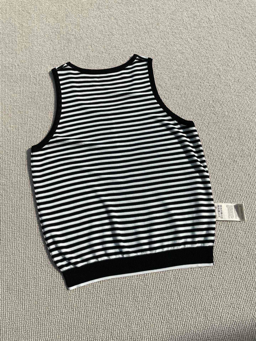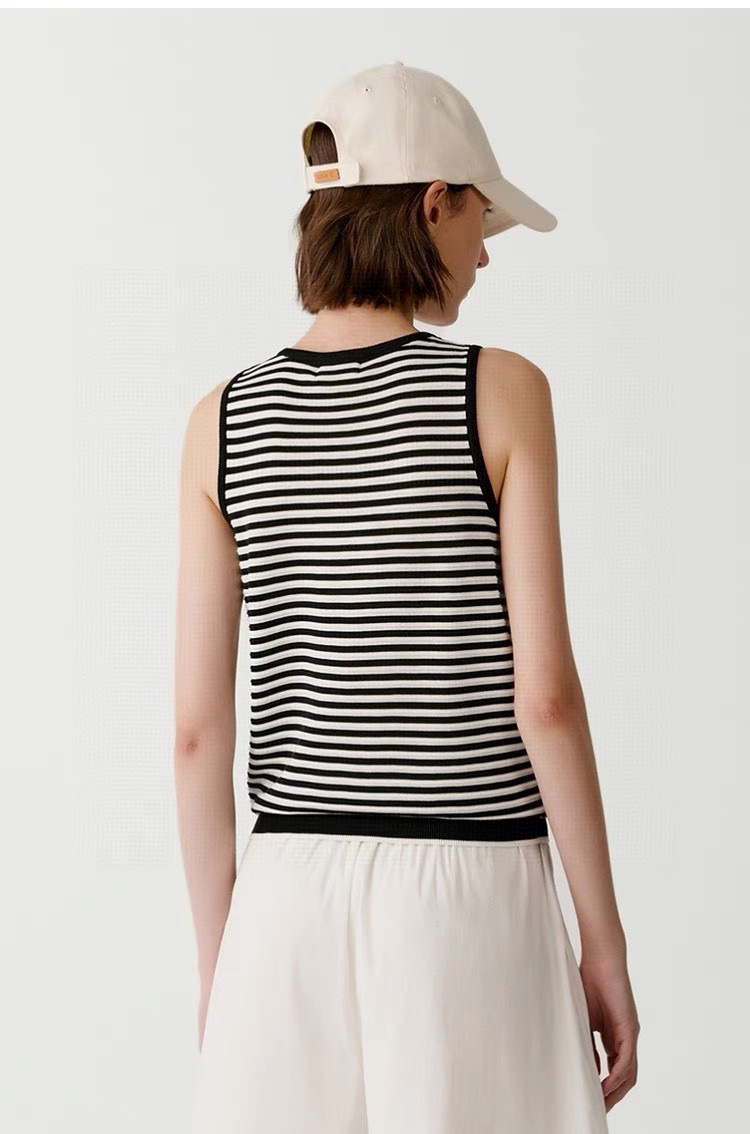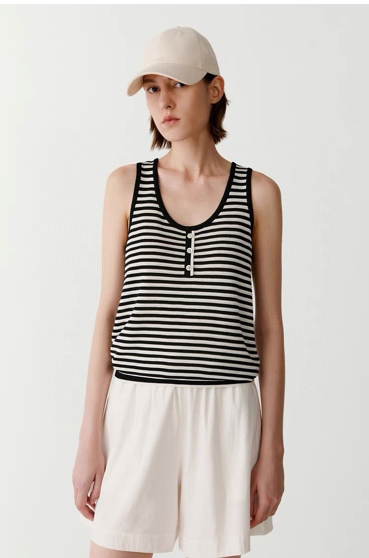 61-5 纯圆正 小禾 7057款 桑蚕丝有机棉 贝壳纽扣 黑白条纹基础款背心