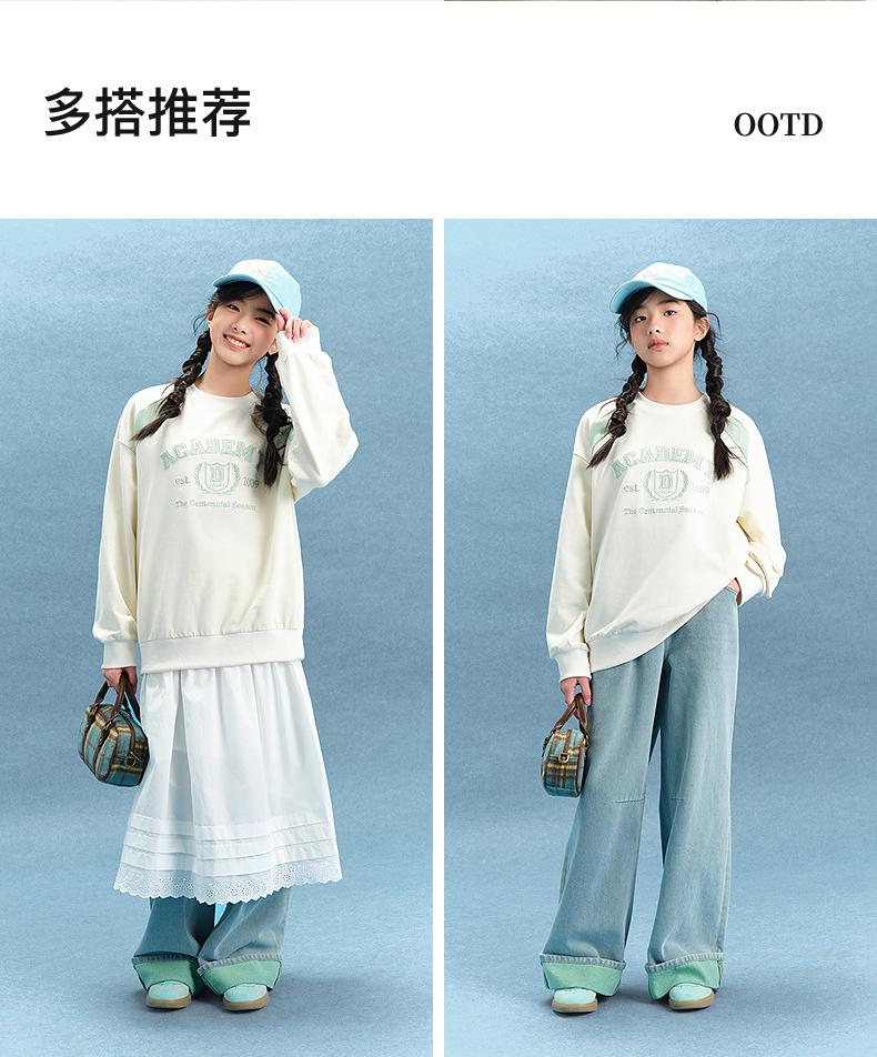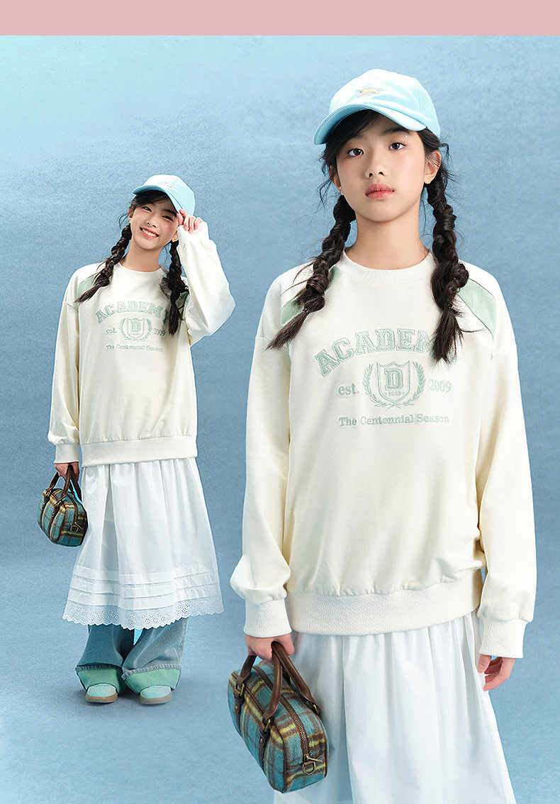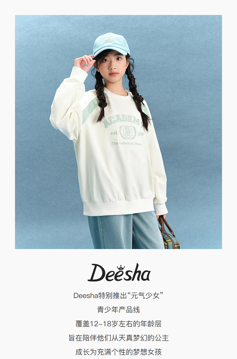 笛莎Deesha青少年女童卫衣2025春季女童圆领卫衣