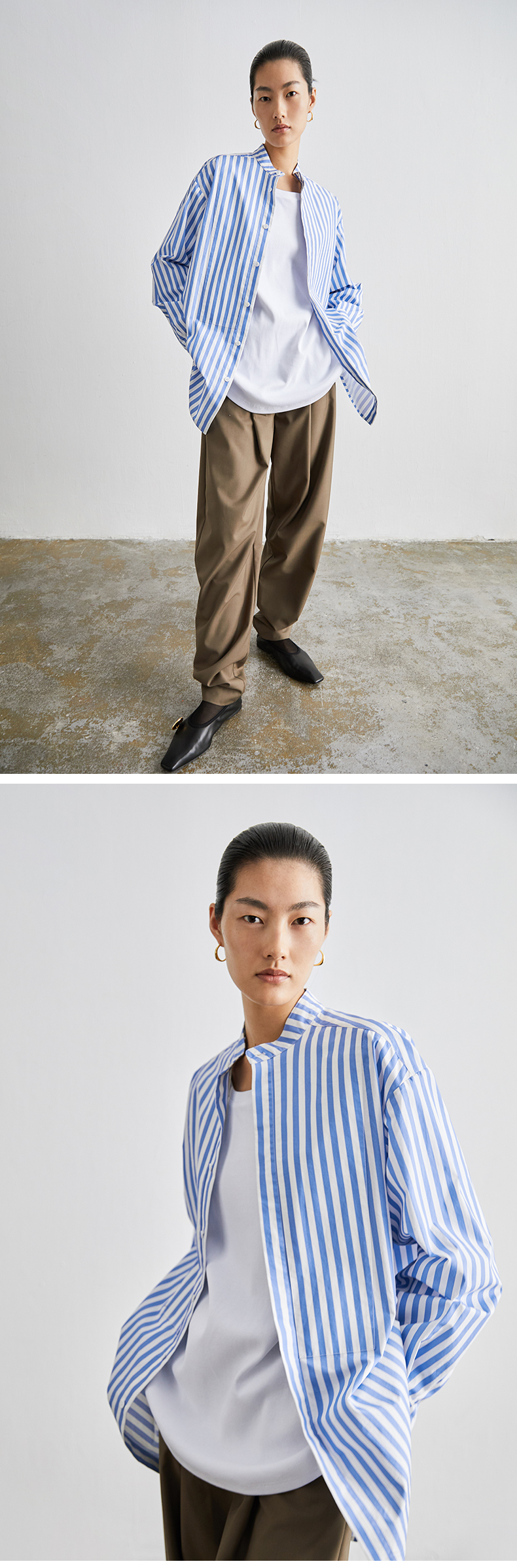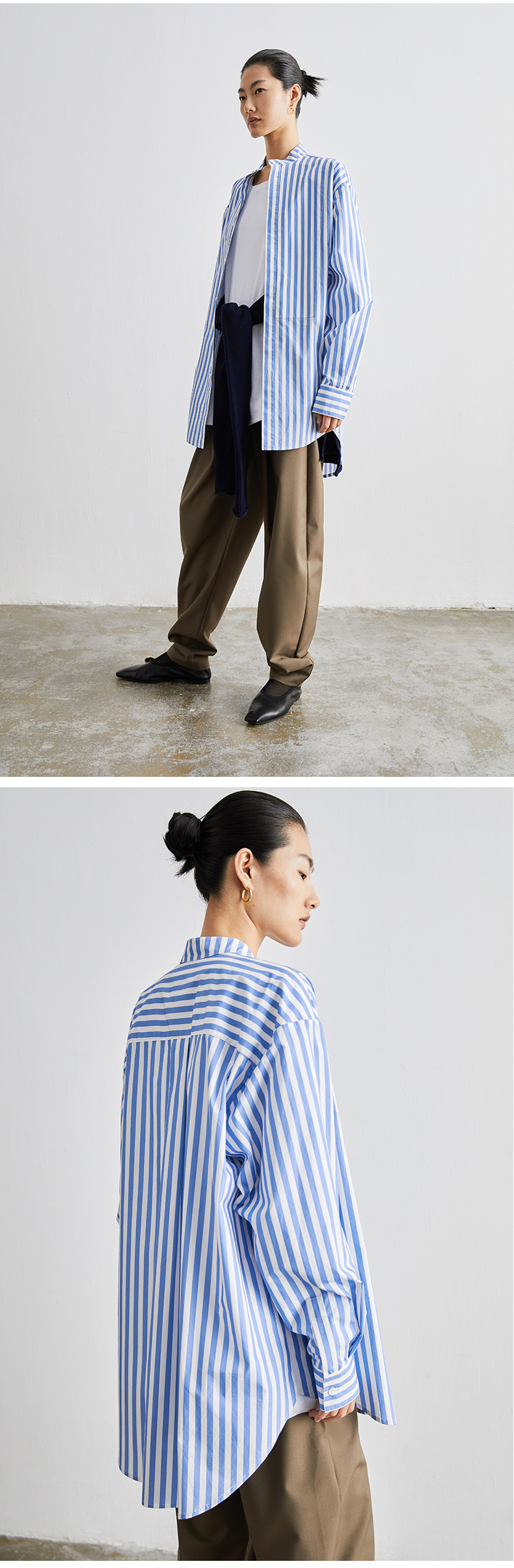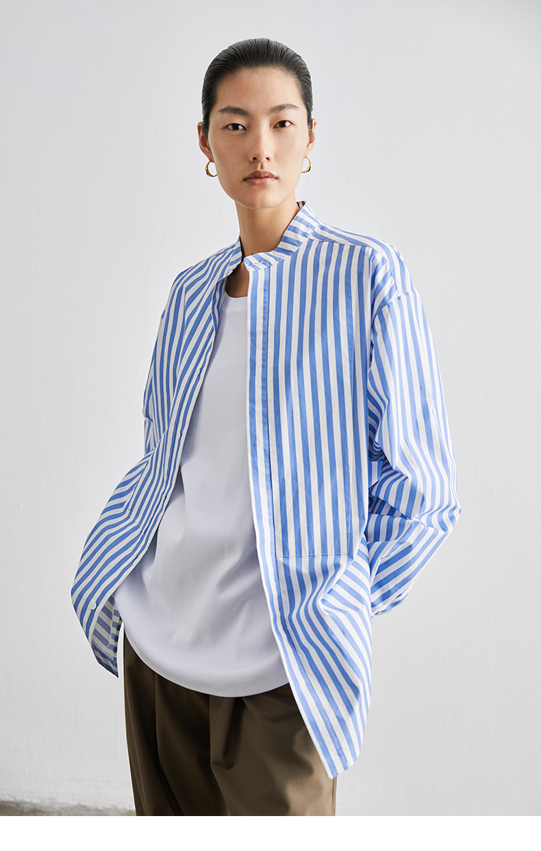 HIDEMI 廓形蓝白条纹衬衫