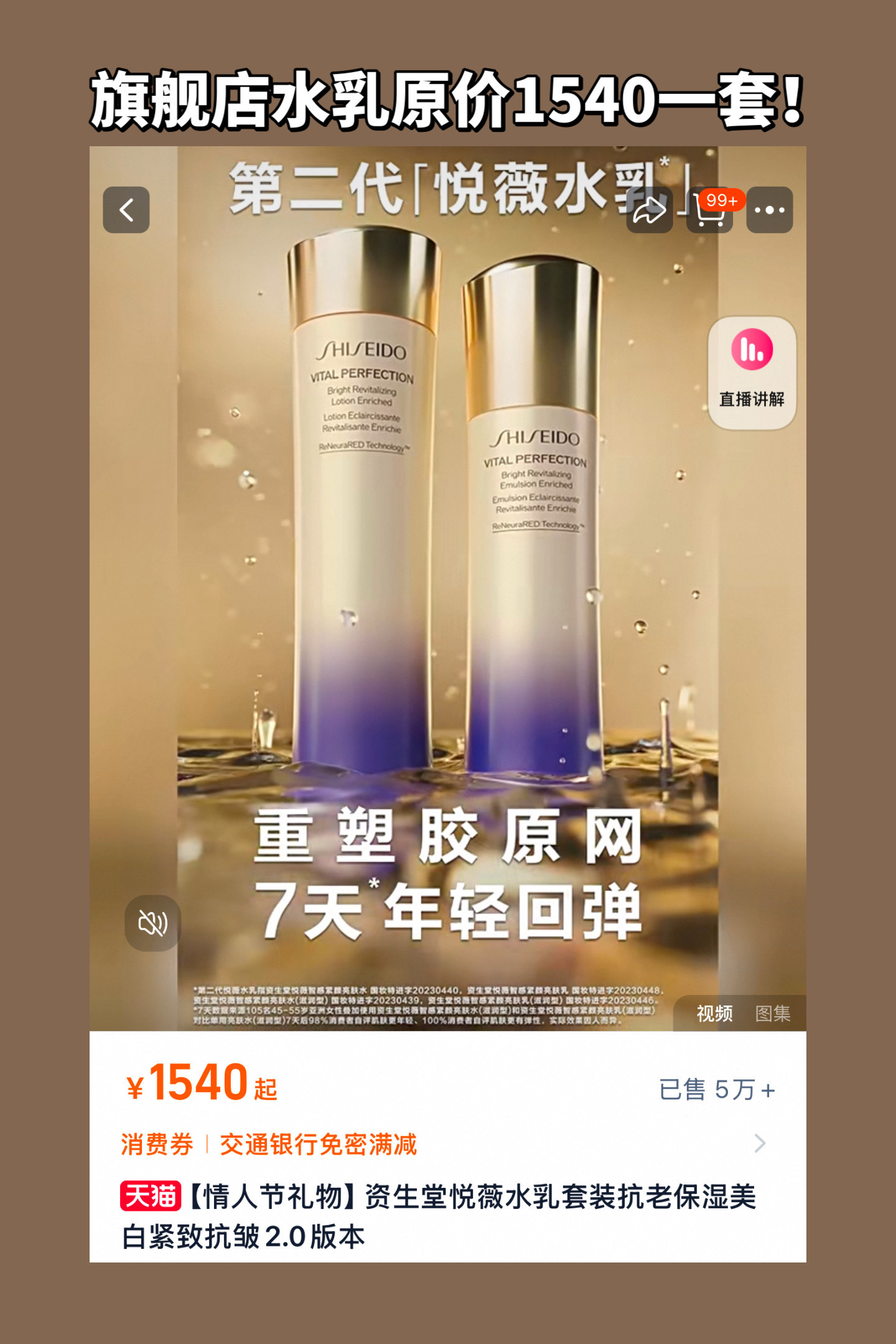 [透小蜜心选]【活动价 ¥ 139.9】资生堂悦薇水乳水75ml*乳30ml