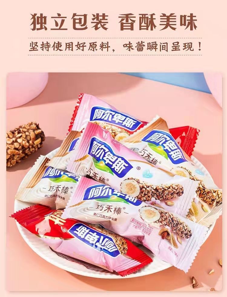 【爆款超低价预售 急单慎拍】阿尔卑斯巧禾棒巧克力味果仁夹心米果能量棒休闲膨化礼包零食批发
