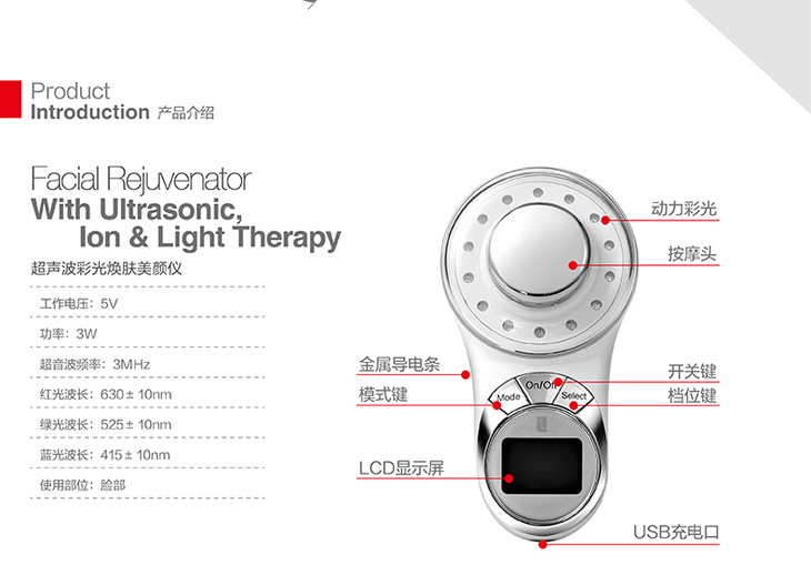 UI-300BS-WH1 超声波彩光焕肤美颜仪