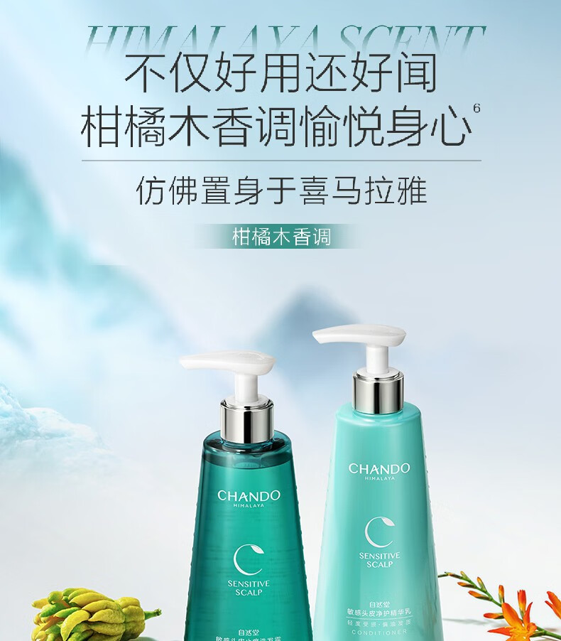 自然堂(CHANDO)赵露思同款-敏感头皮护理止痒洗发露/净护精华乳550mL