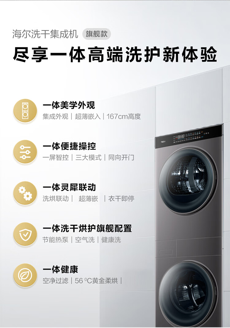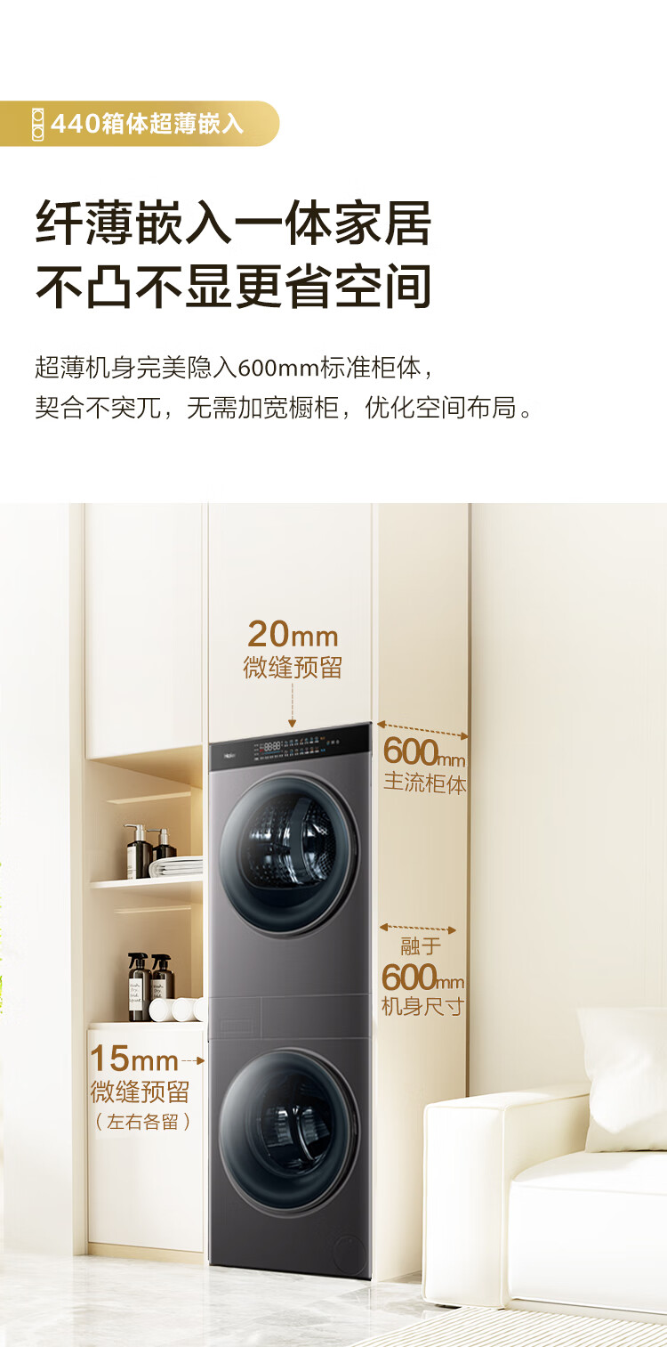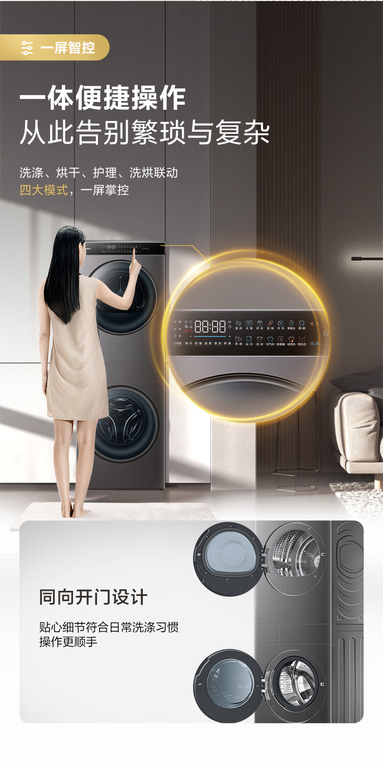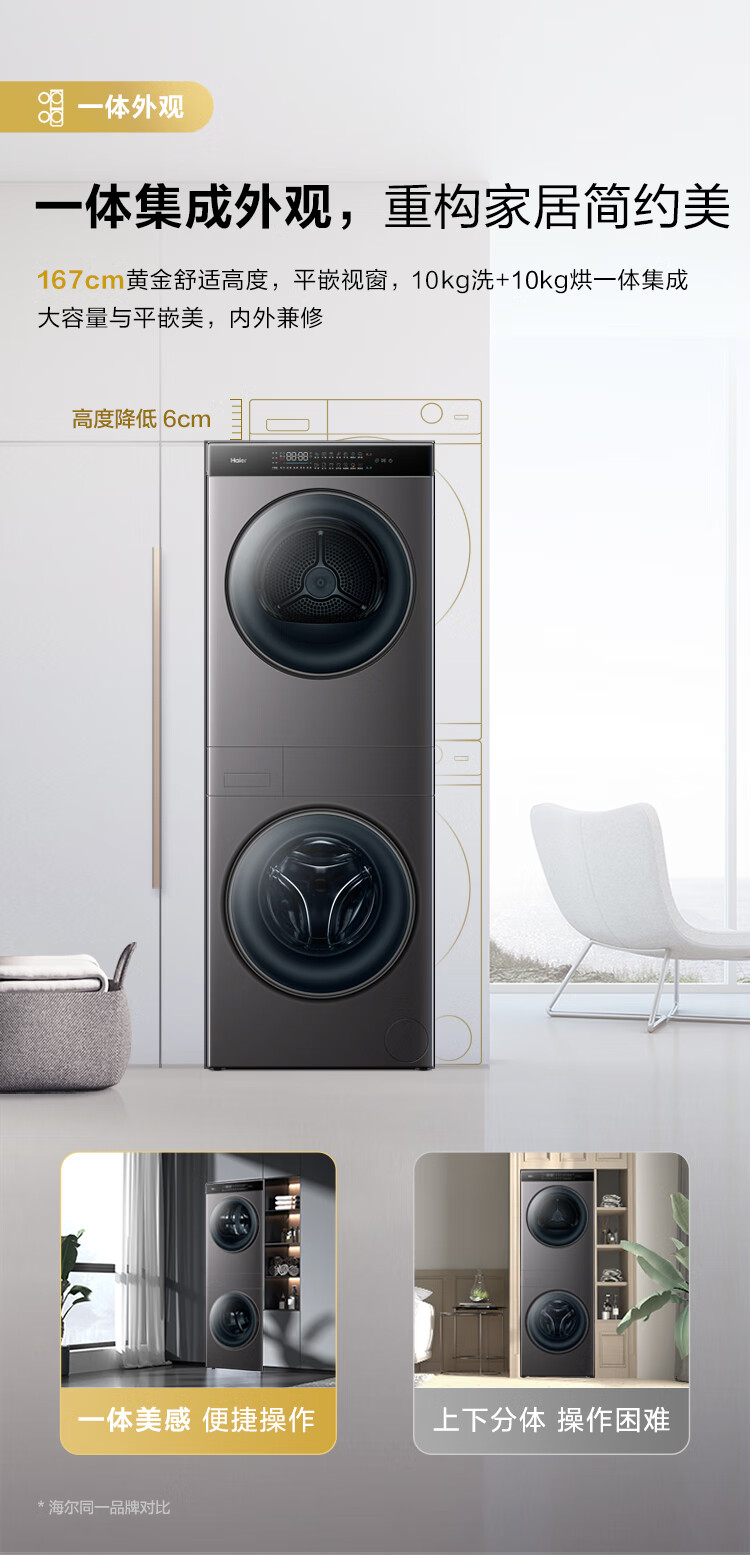 【年度新品】海尔叠黛和美 洗烘套装超薄一体机10KG滚筒洗衣机热泵式干衣机组合 H9 B1006SC 【H9】超薄嵌入+一屏智控+热泵柔烘