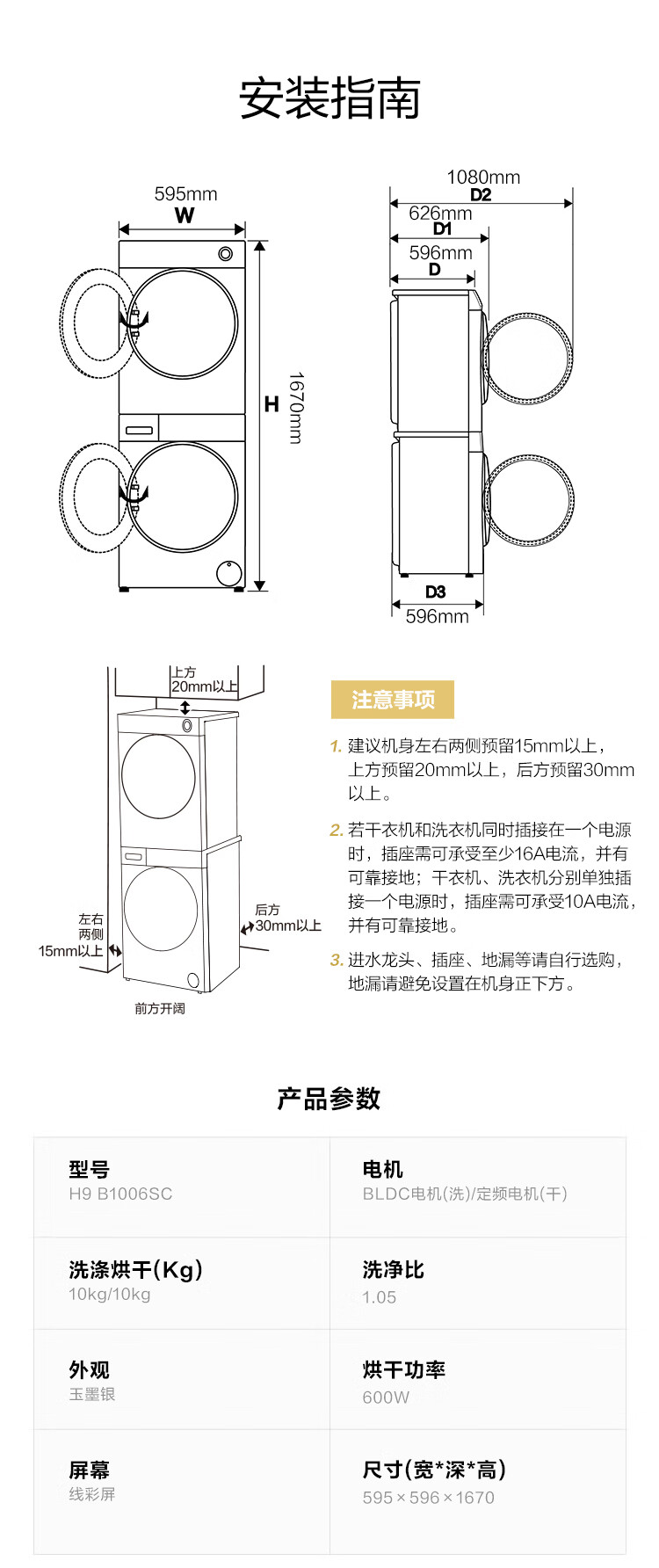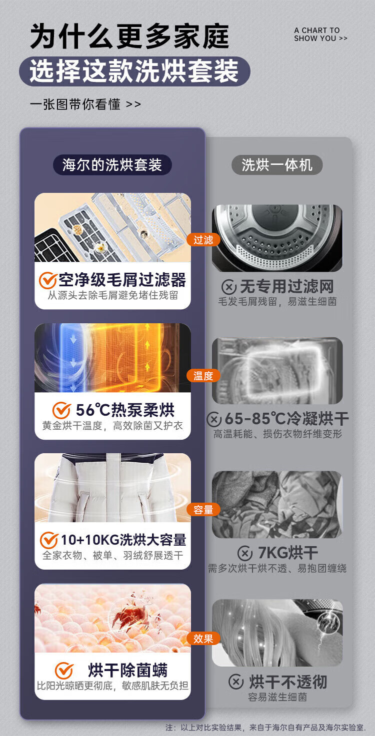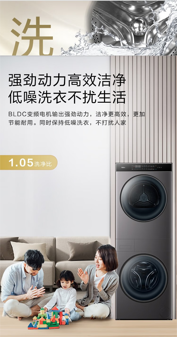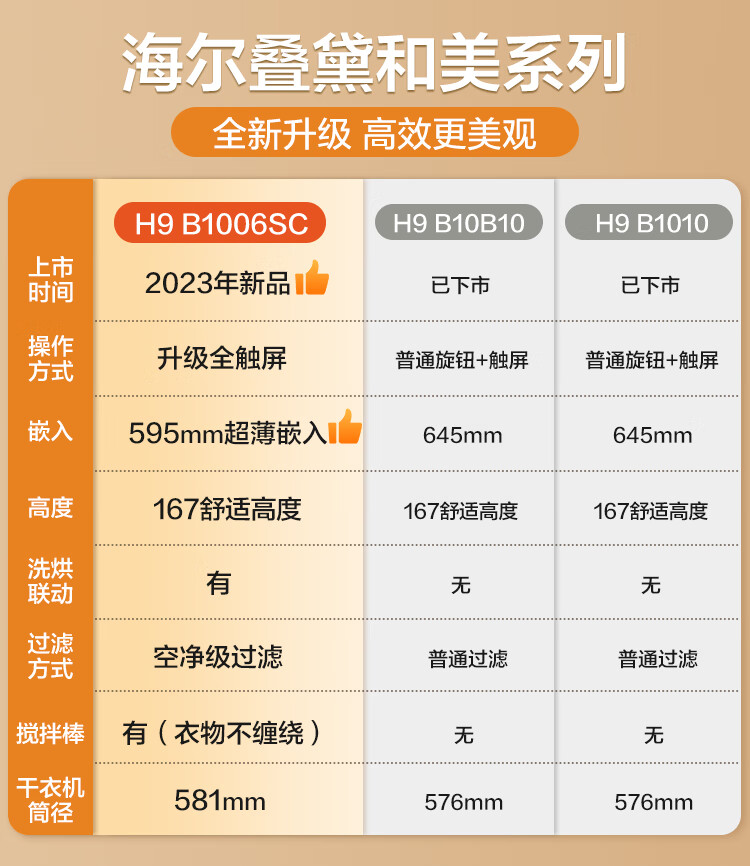 【年度新品】海尔叠黛和美 洗烘套装超薄一体机10KG滚筒洗衣机热泵式干衣机组合 H9 B1006SC 【H9】超薄嵌入+一屏智控+热泵柔烘