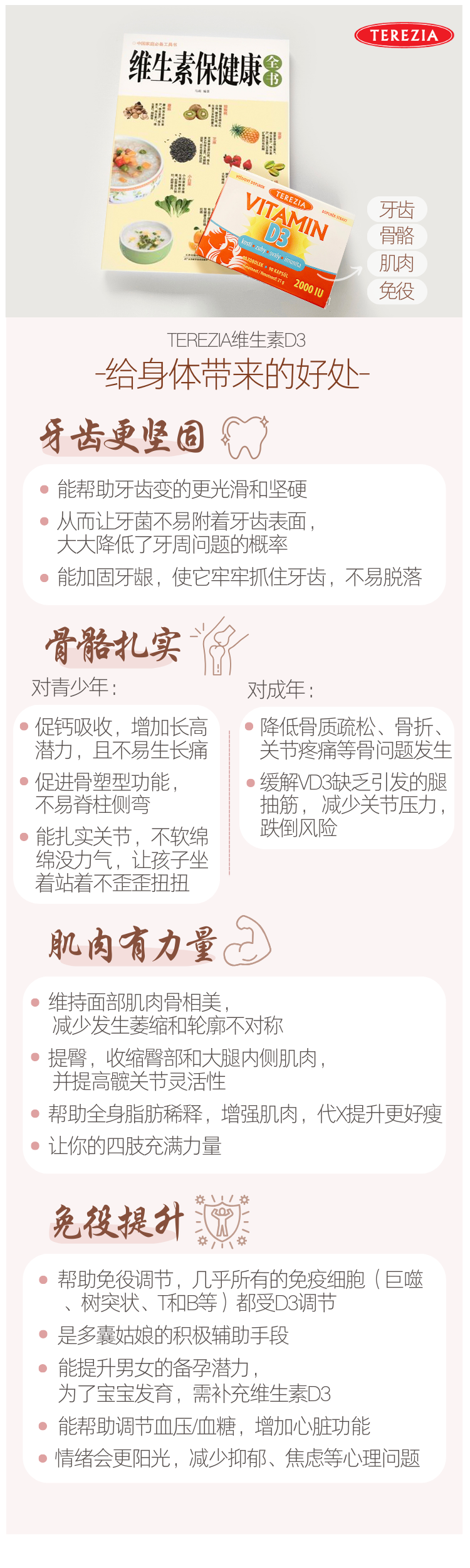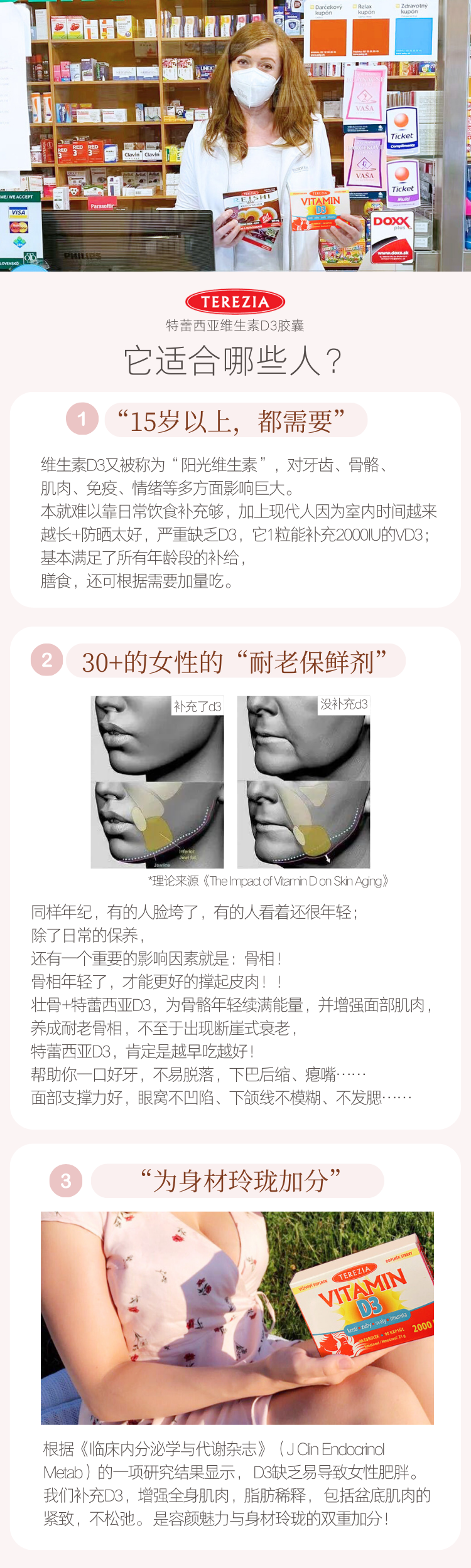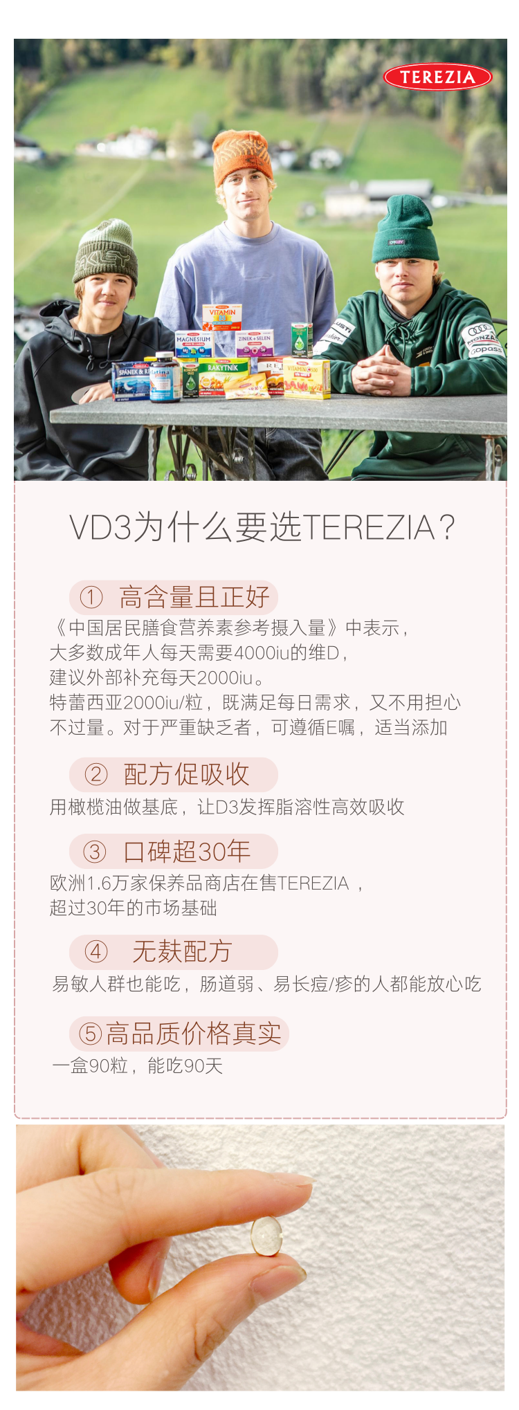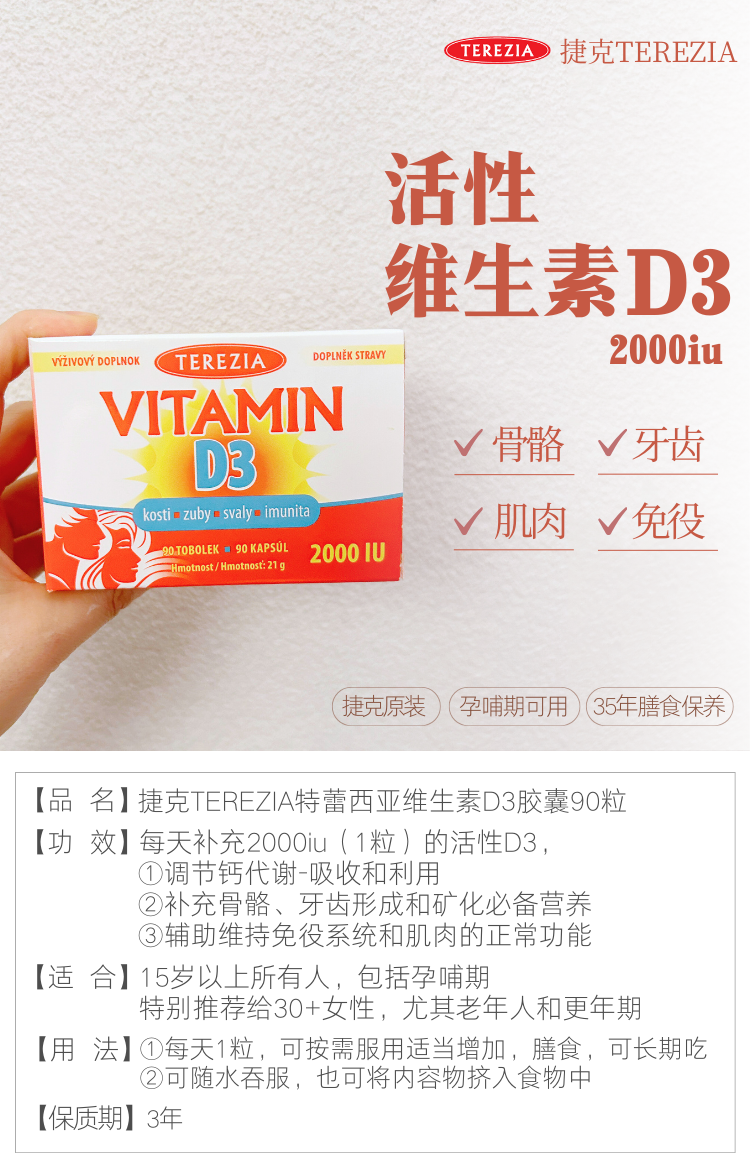捷克TEREZIA特蕾西亚维生素D3胶囊 2000iu引钙入骨90粒 儿童/成人