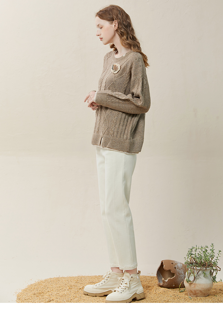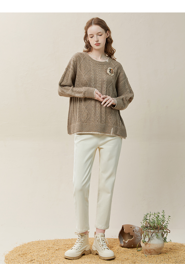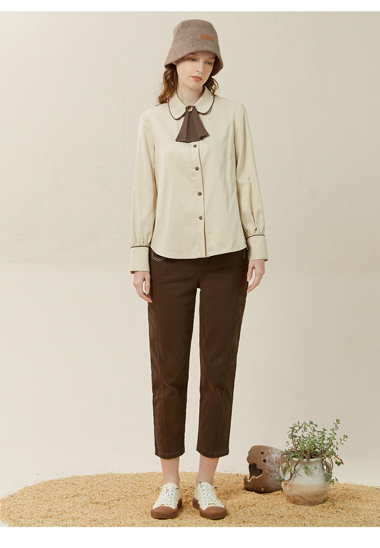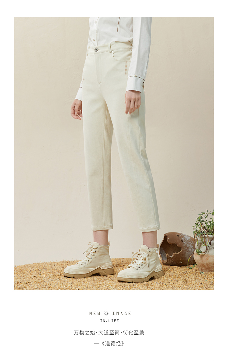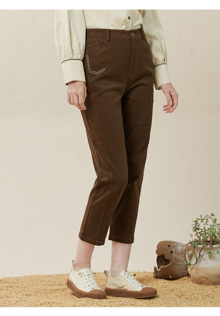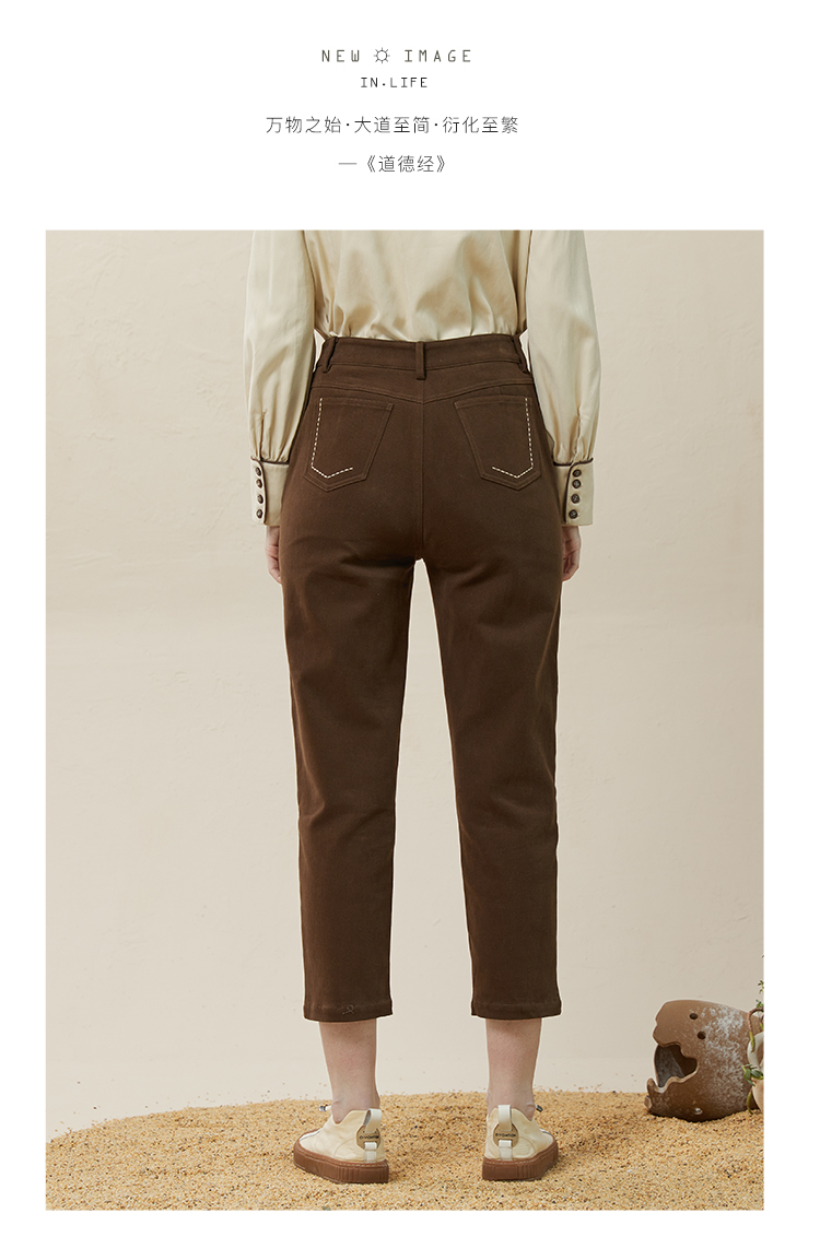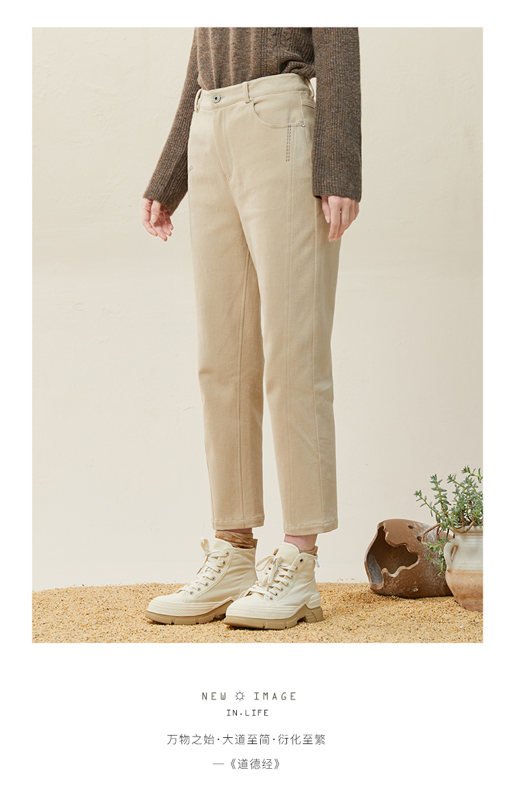 Famecoco范可儿纯棉休闲裤秋冬款显瘦修身纯色百搭裤子女F228GA012