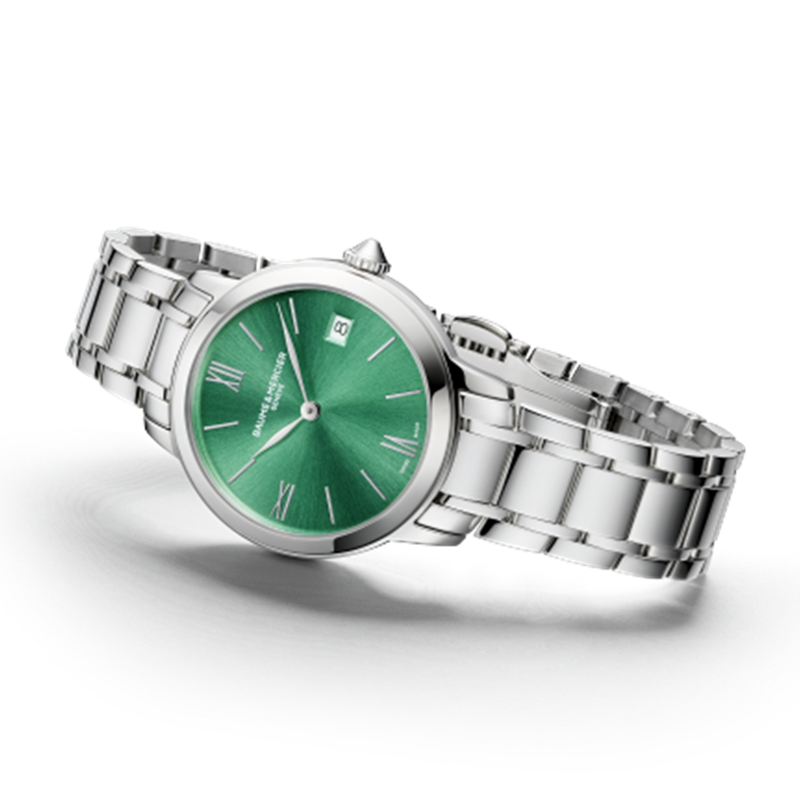 镜面材质 | 蓝宝石水晶玻璃 | 表盘 | 精钢表壳 绿色表盘 日期显示 |