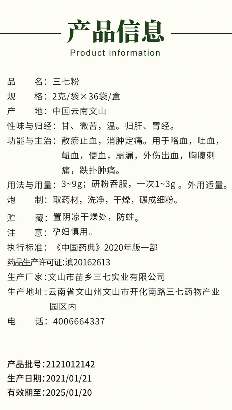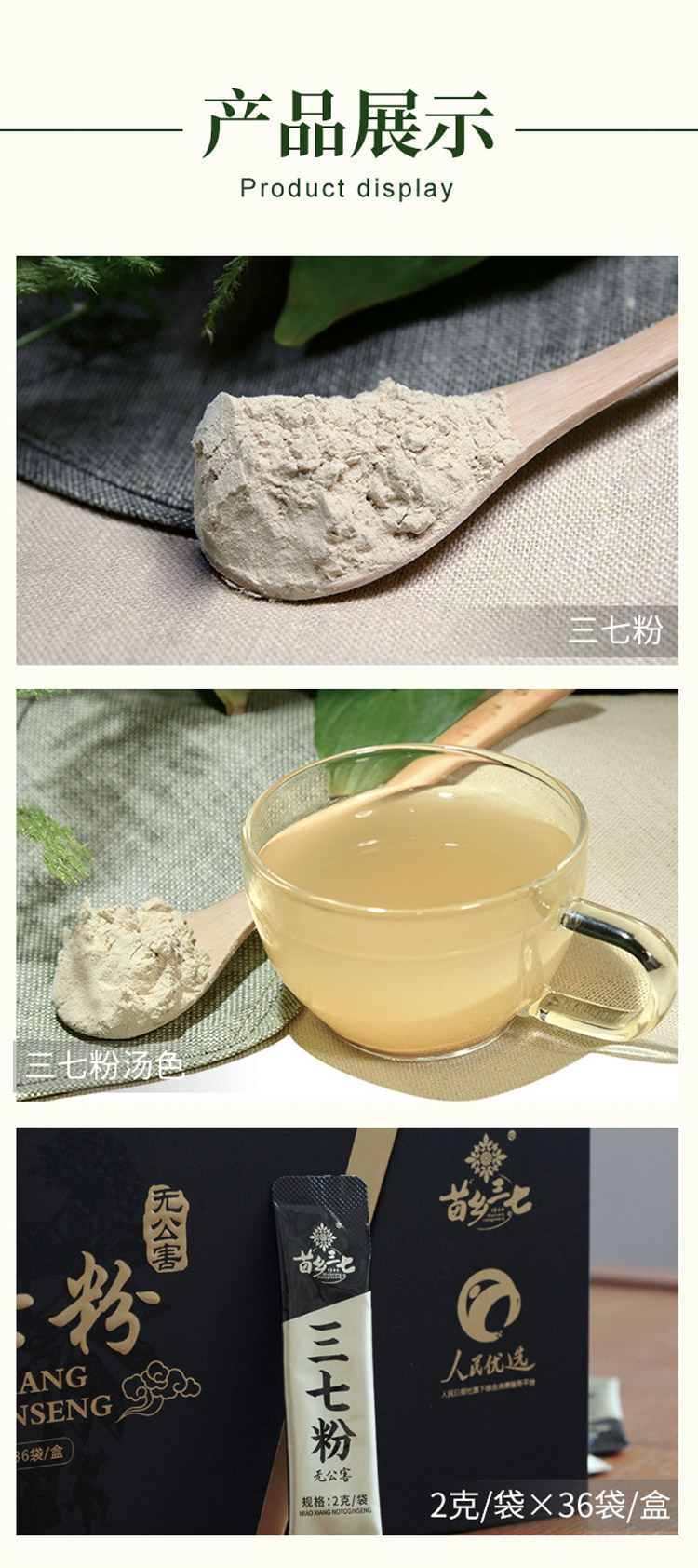 苗乡无公害三七粉 人民优选 便携装72g