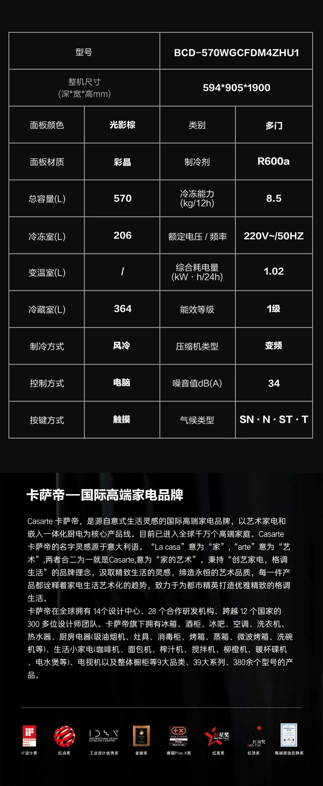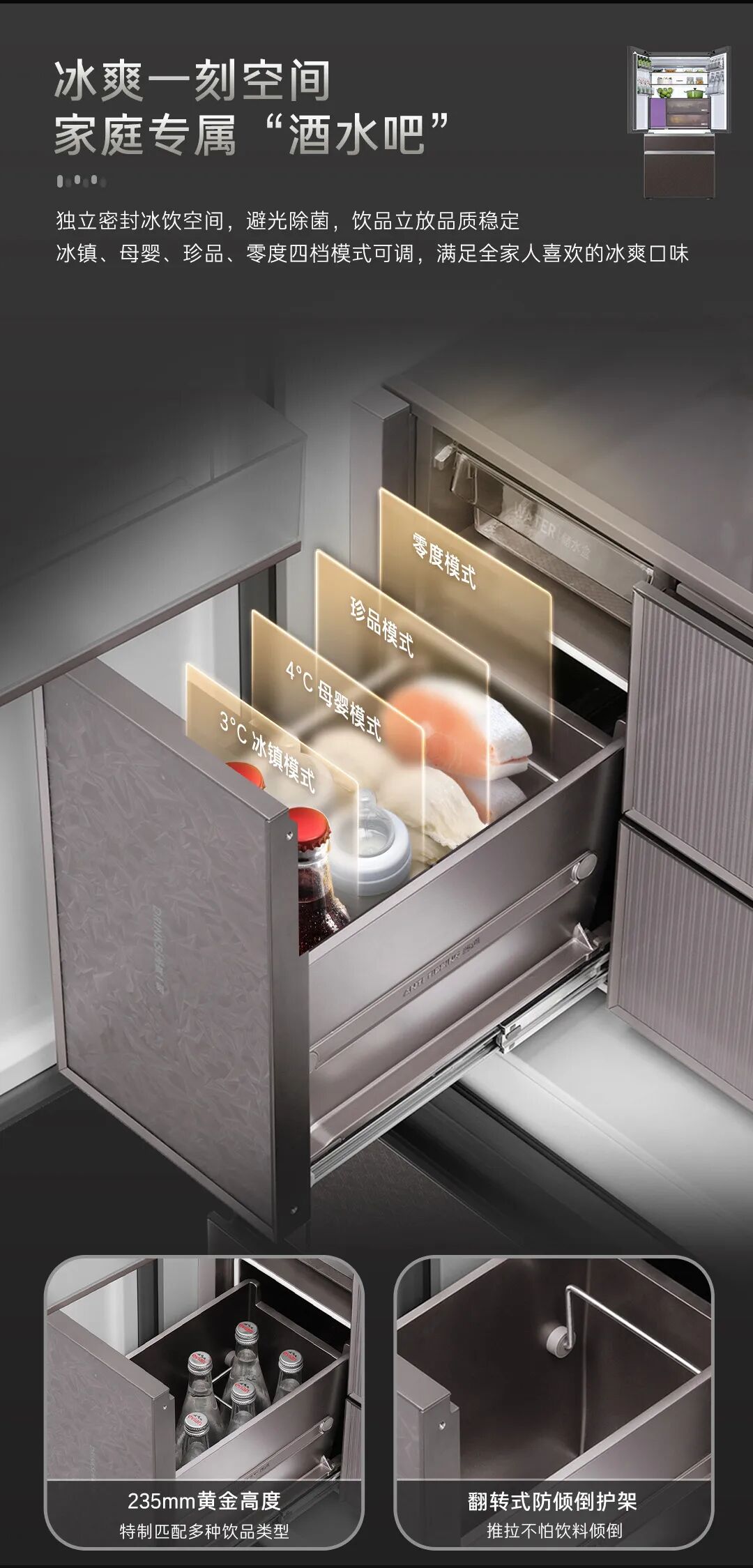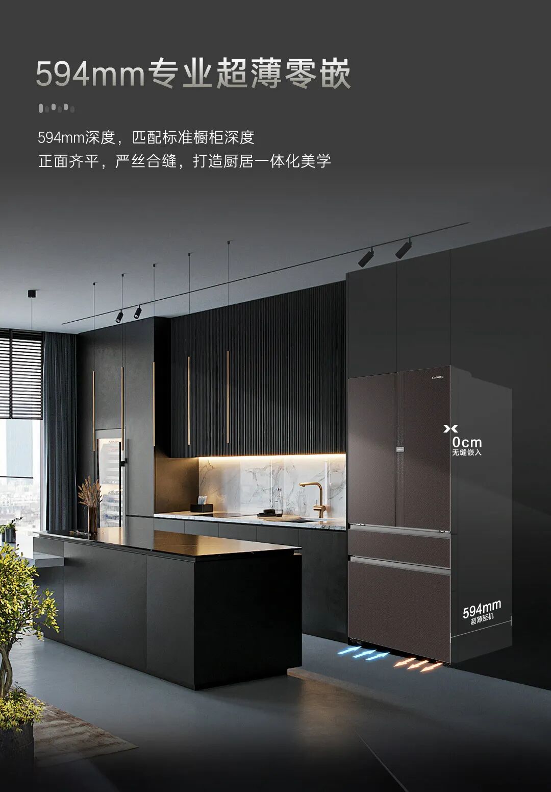 卡萨帝冰箱570升零距离嵌入 594mm超薄 双MRA低氧窖藏养鲜,底置循环风幕保鲜,智慧动态除菌净化,独立密封冰饮空间一键快速制冰 光影棕BCD-570WGCFDM4ZHU1