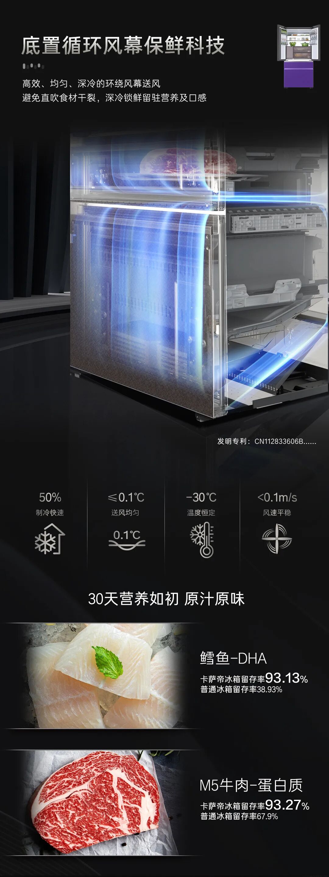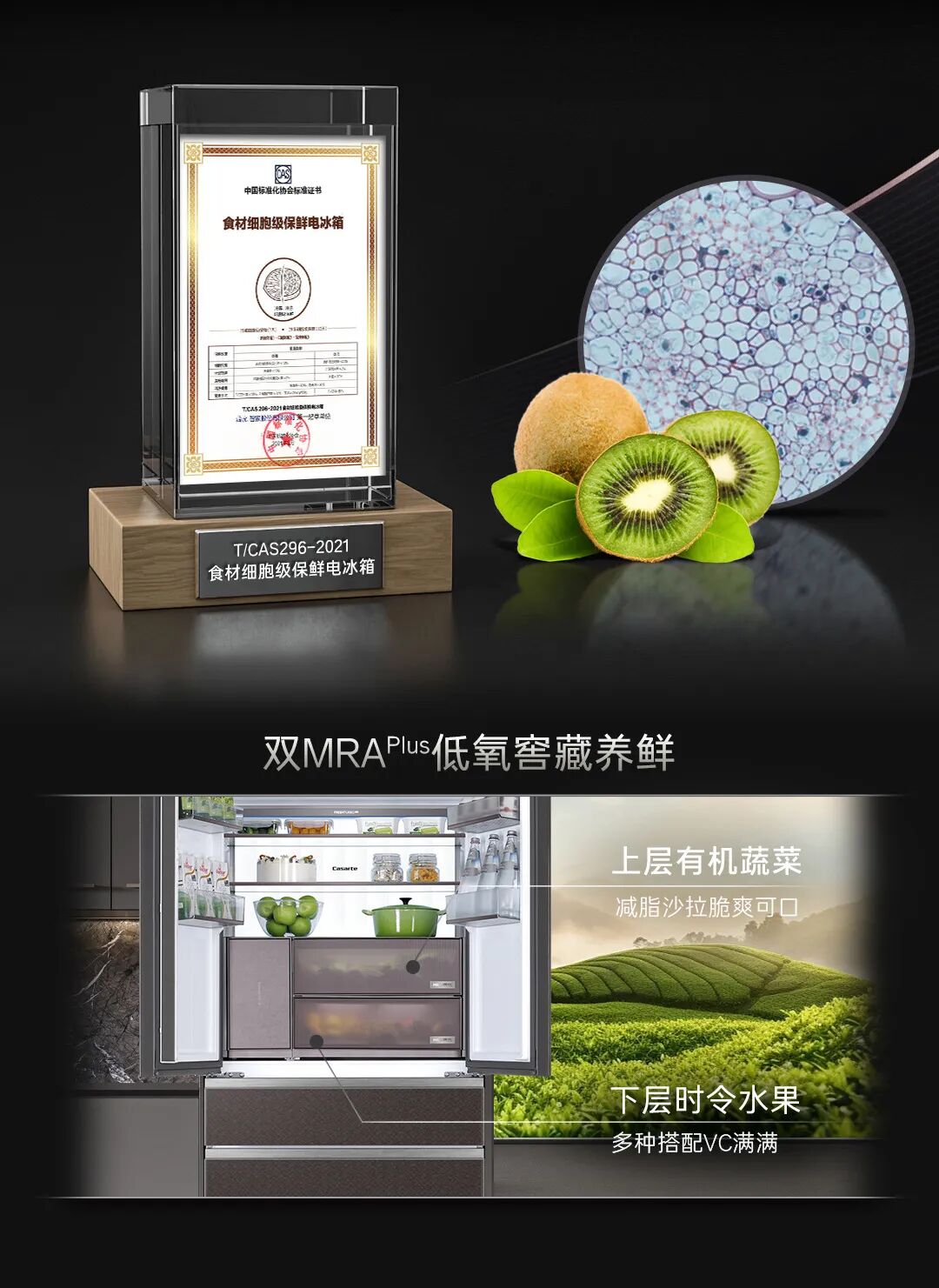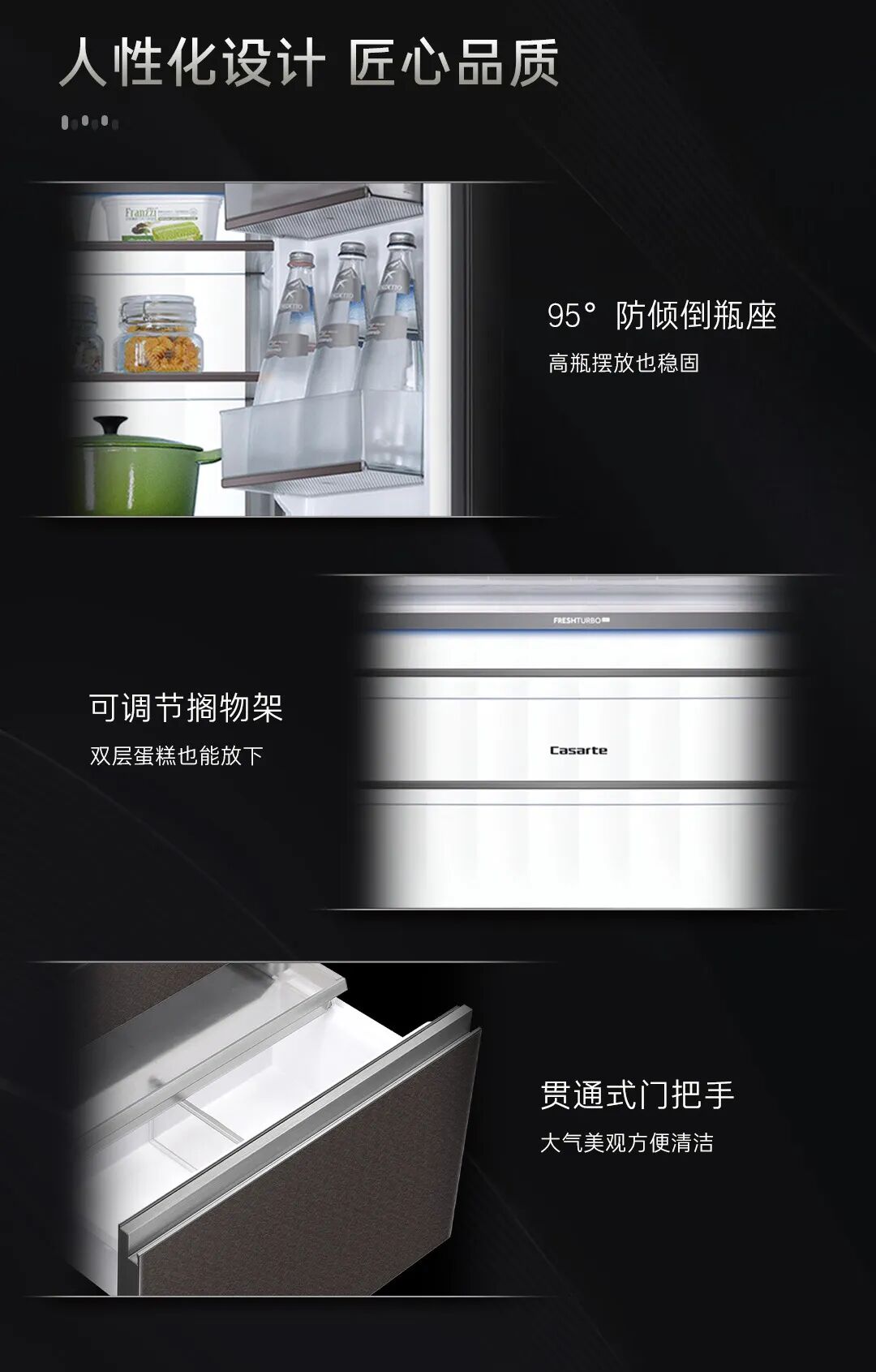 卡萨帝冰箱570升零距离嵌入 594mm超薄 双MRA低氧窖藏养鲜,底置循环风幕保鲜,智慧动态除菌净化,独立密封冰饮空间一键快速制冰 光影棕BCD-570WGCFDM4ZHU1