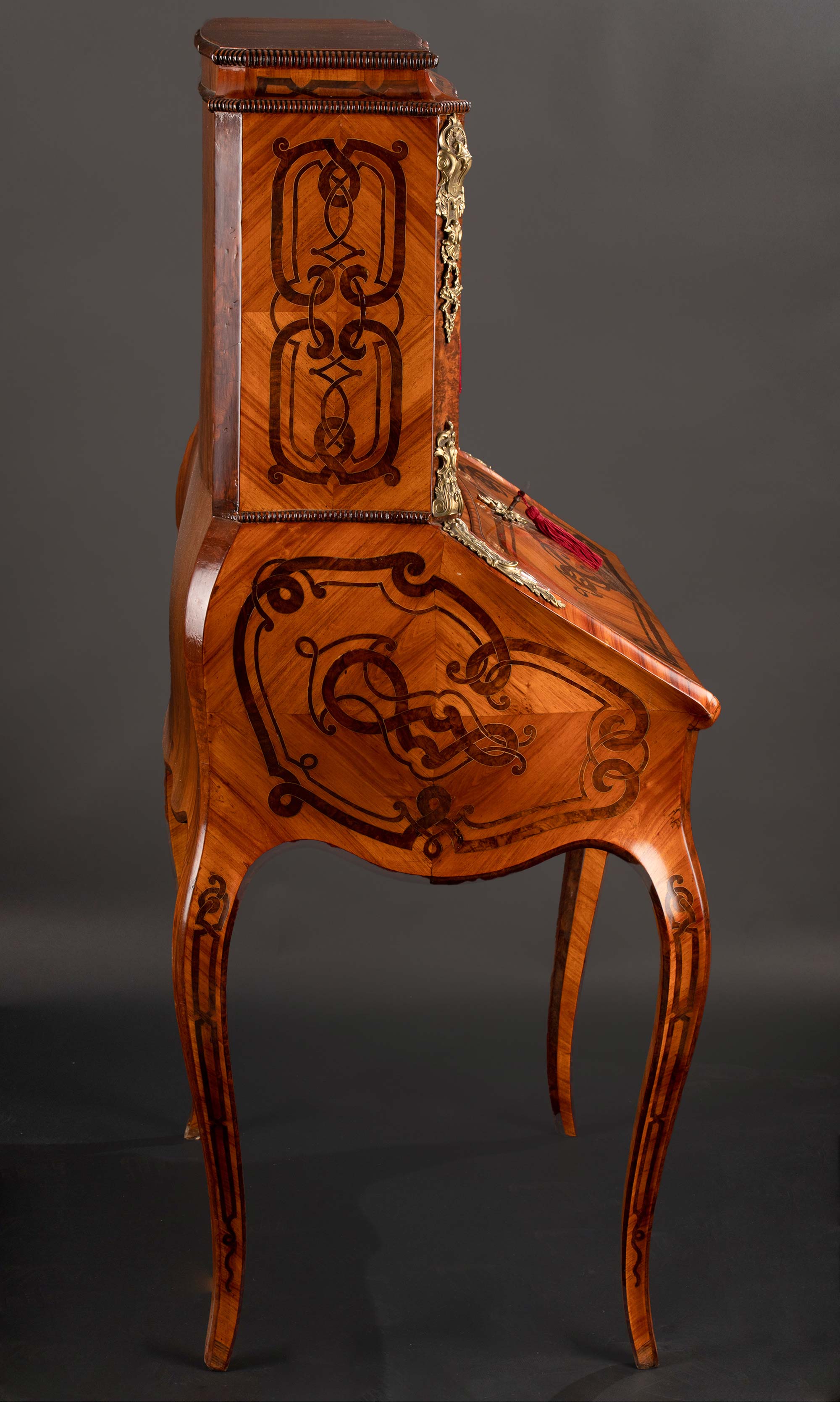 1850年代法国出品路易十五风格皮革台面铜鎏金雕饰翻盖式淑女写字桌
