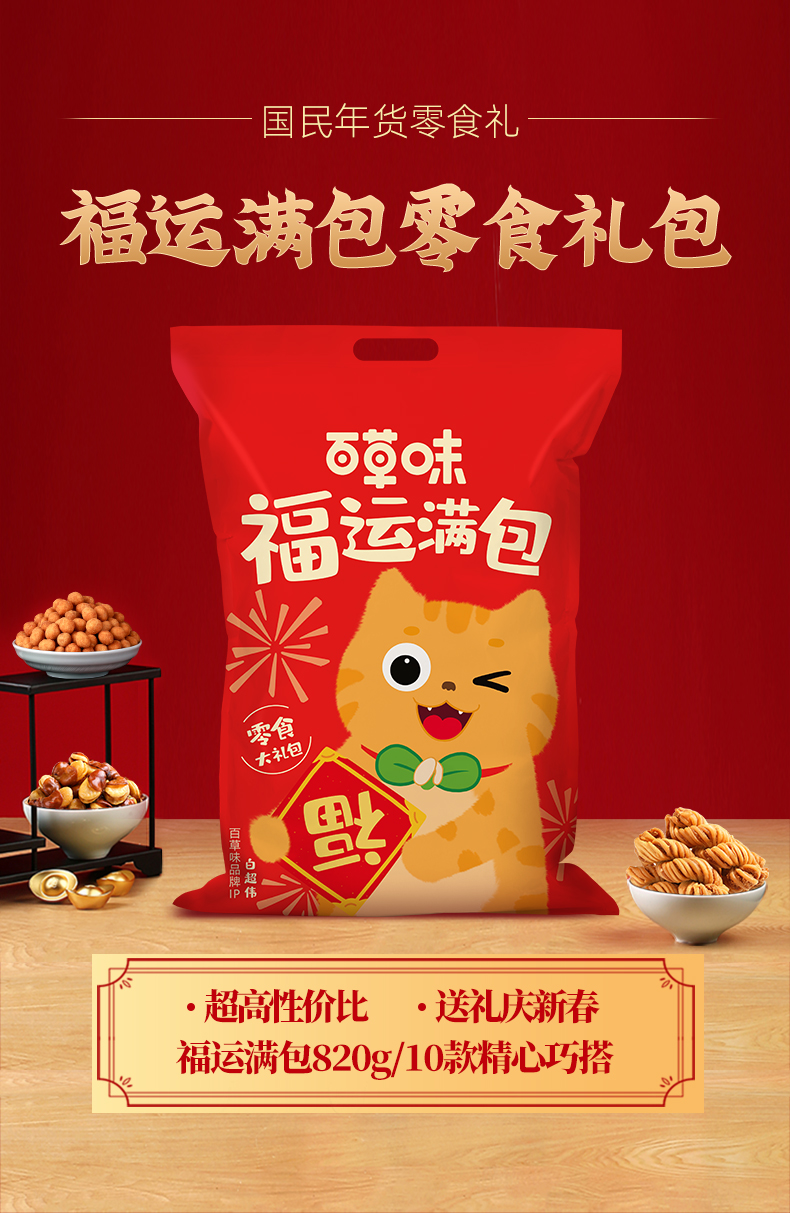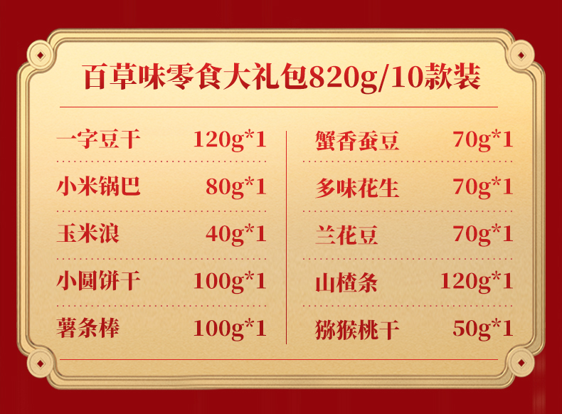 【百草味-巨型大礼包820g/10袋】零食网红干果混合装