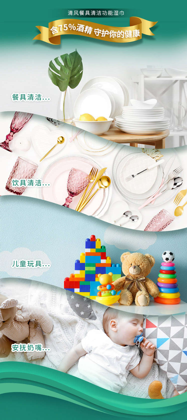 清风 食品级75%酒精湿巾 10片*10包(包邮直发)