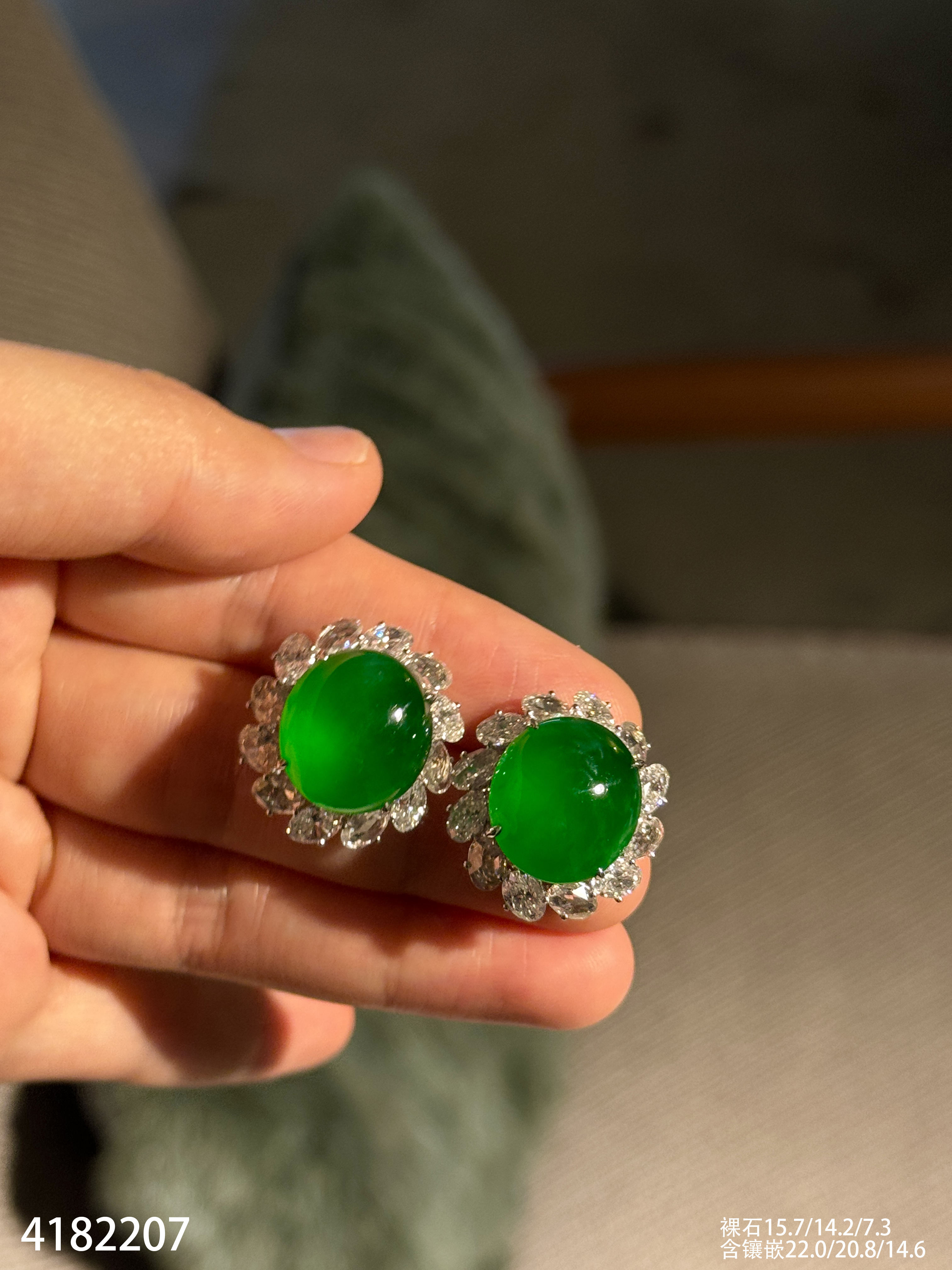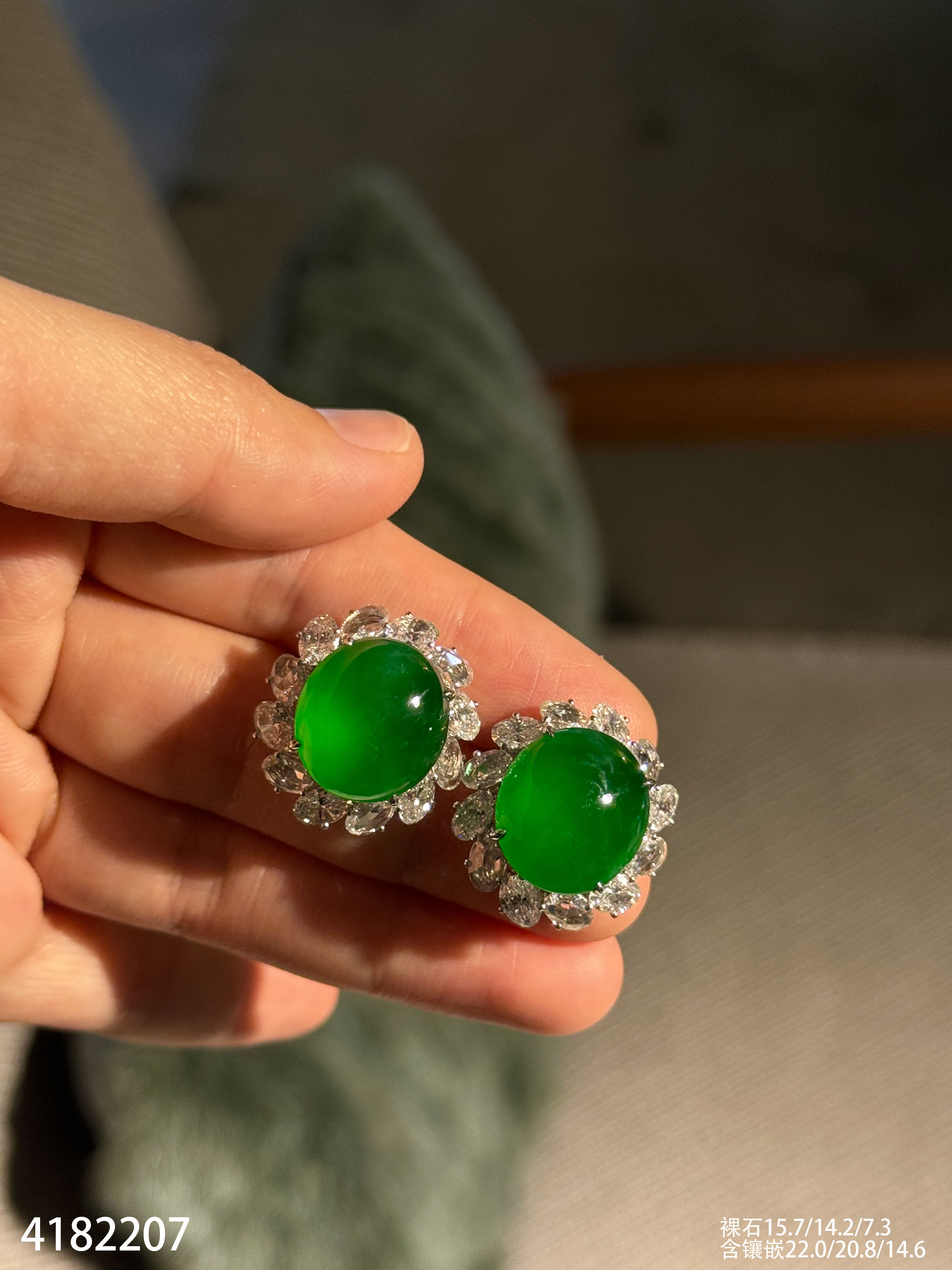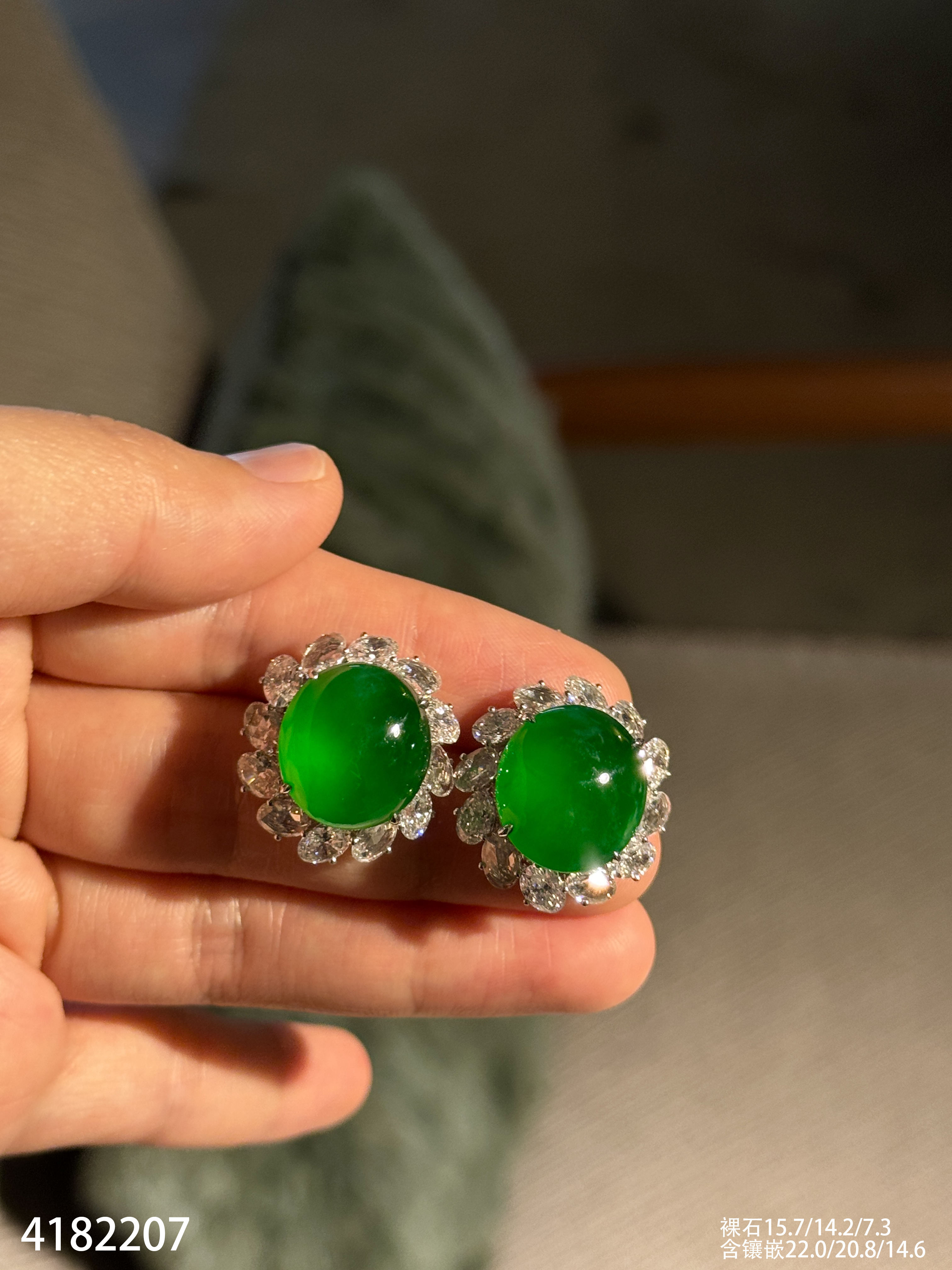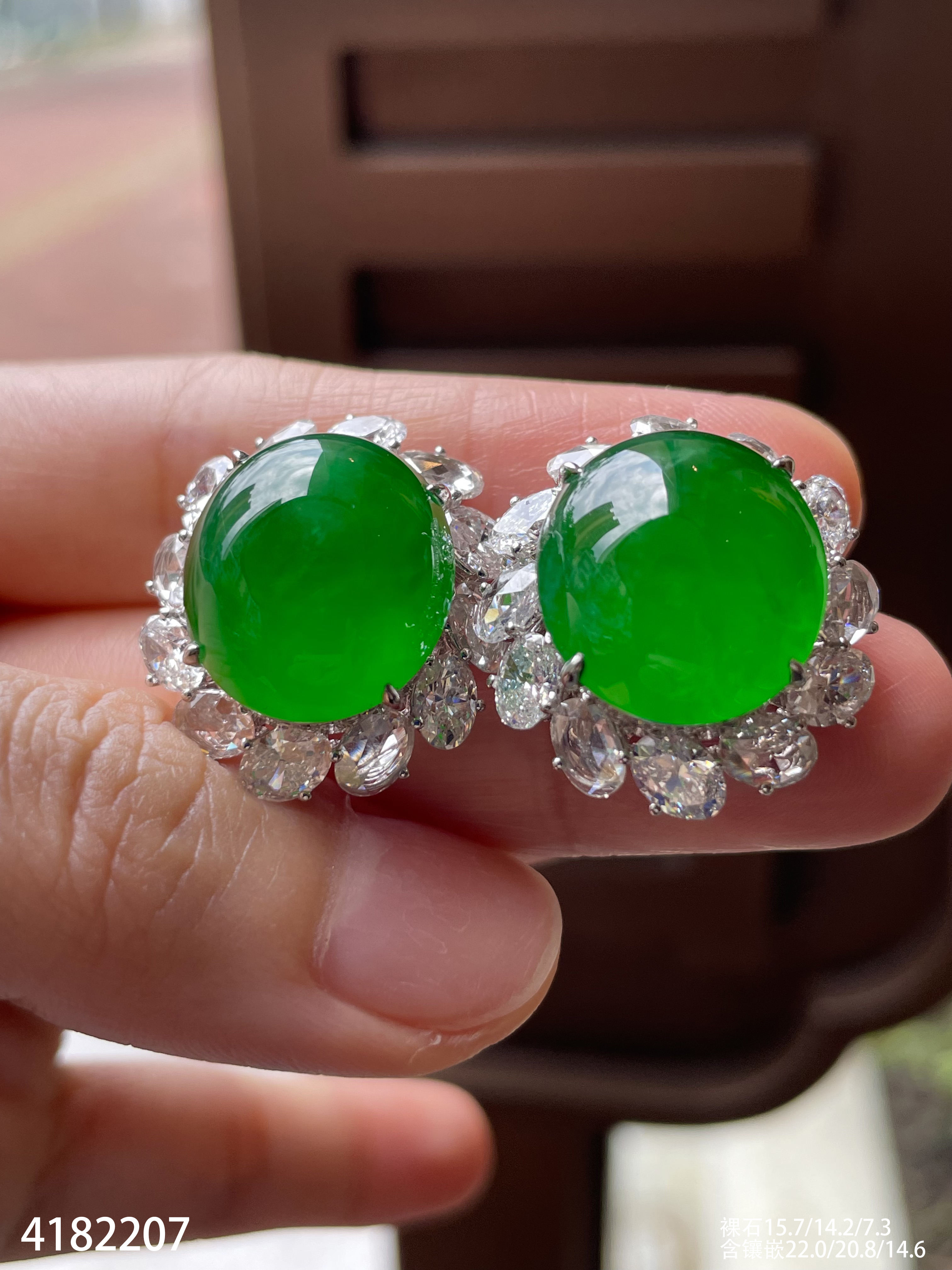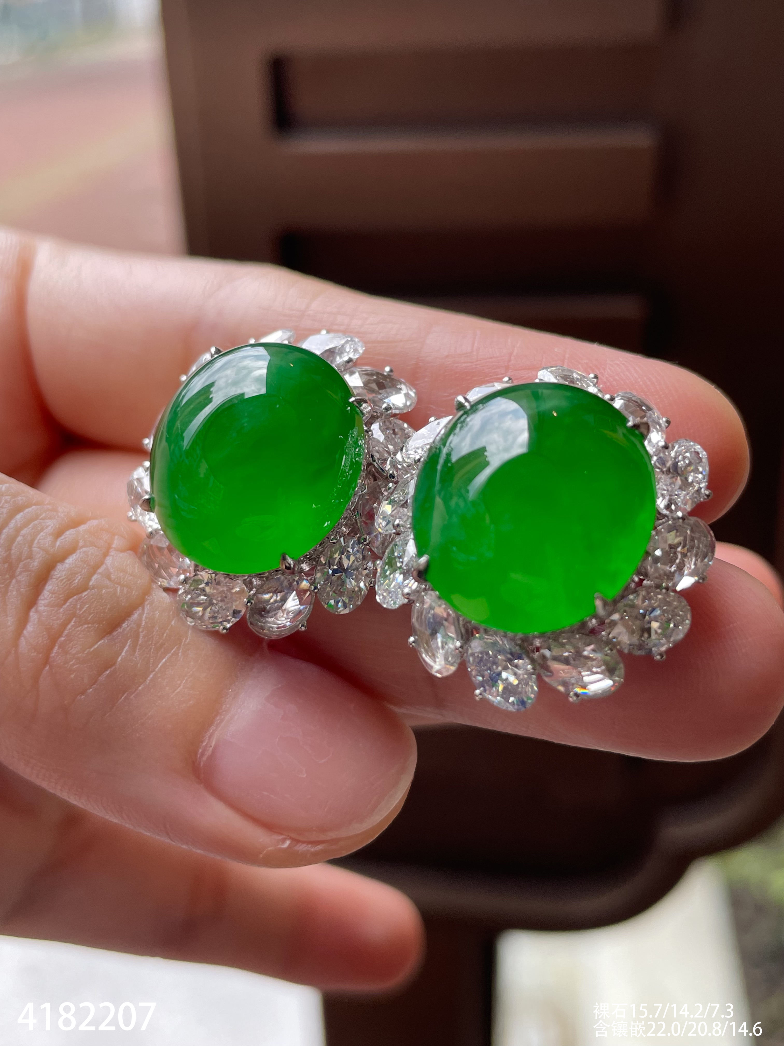 老坑帝王绿蛋面耳钉【4182207】具体价格微信咨询
