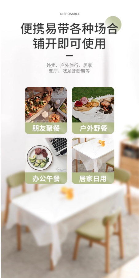 一次性餐桌布 加厚长方形圆形桌塑料薄膜家用防水防油台布盒装