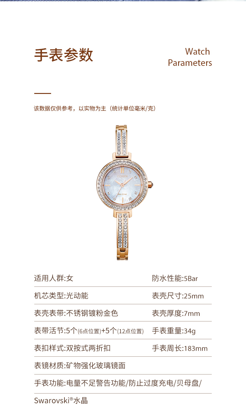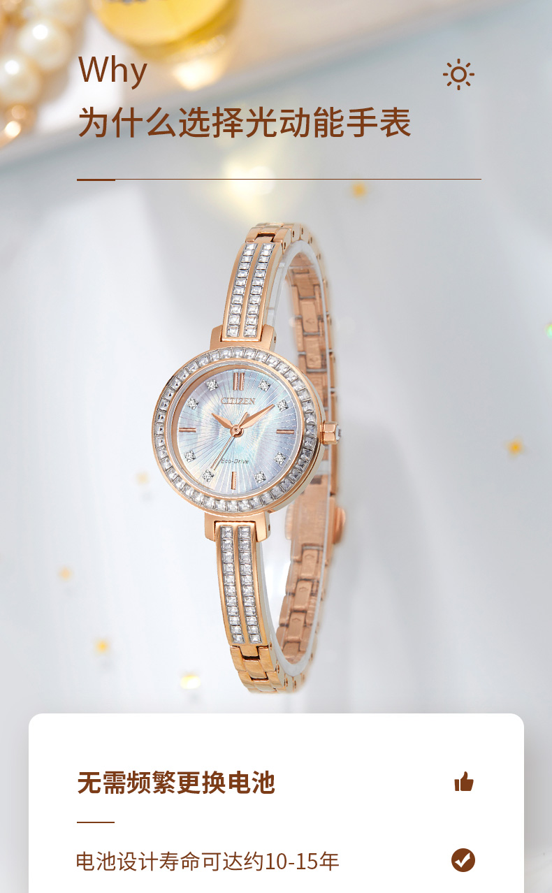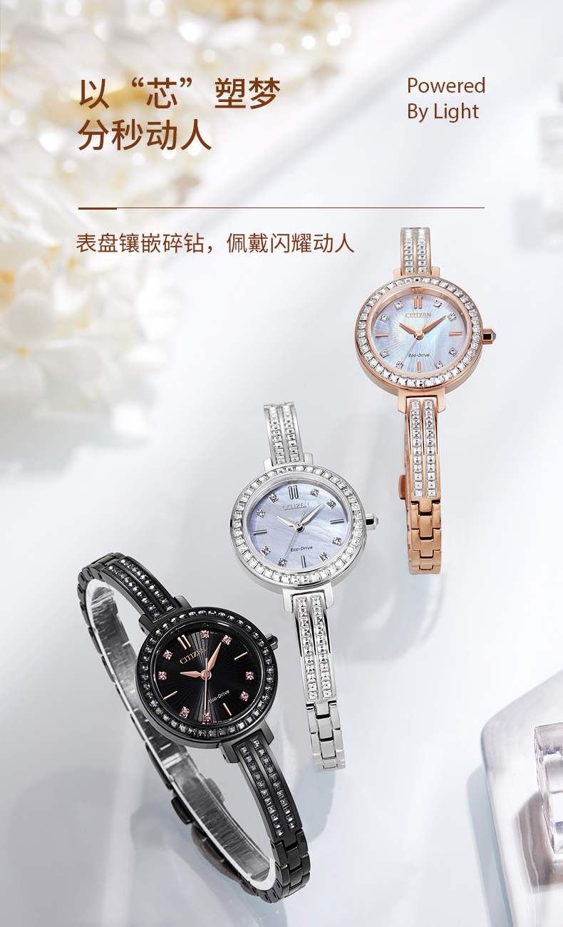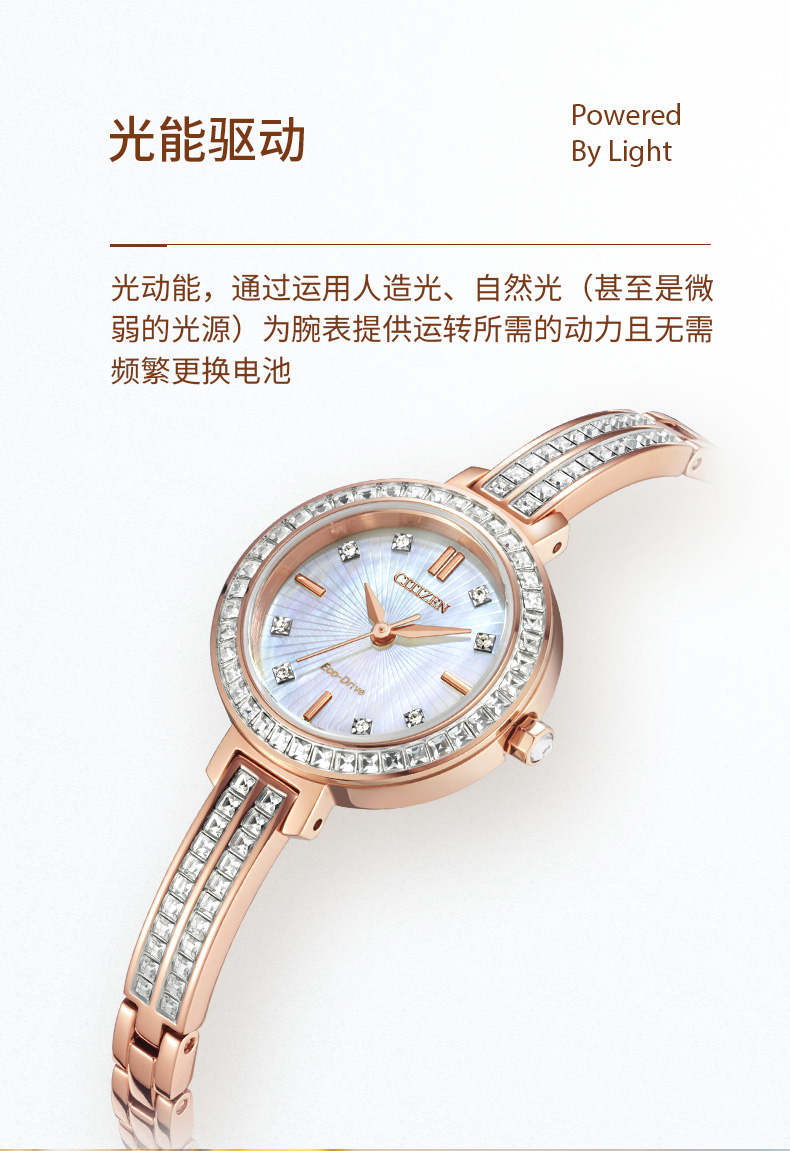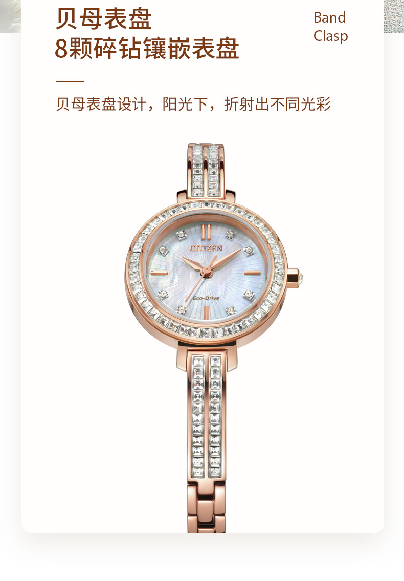 西铁城日本官方正品复古纤巧璀璨水晶贝母表盘光动能女表EM0863-53D