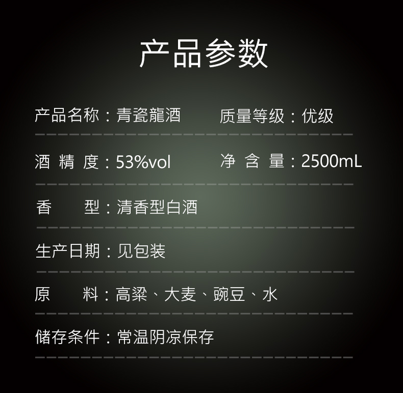 汾阳王 53度 青瓷龙酒 2.5L*1坛 清香型白酒