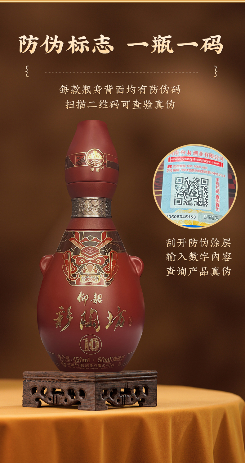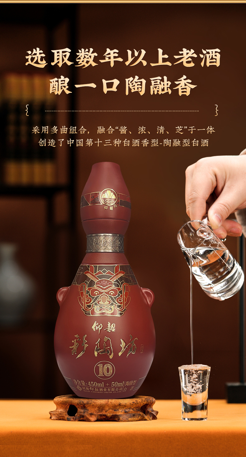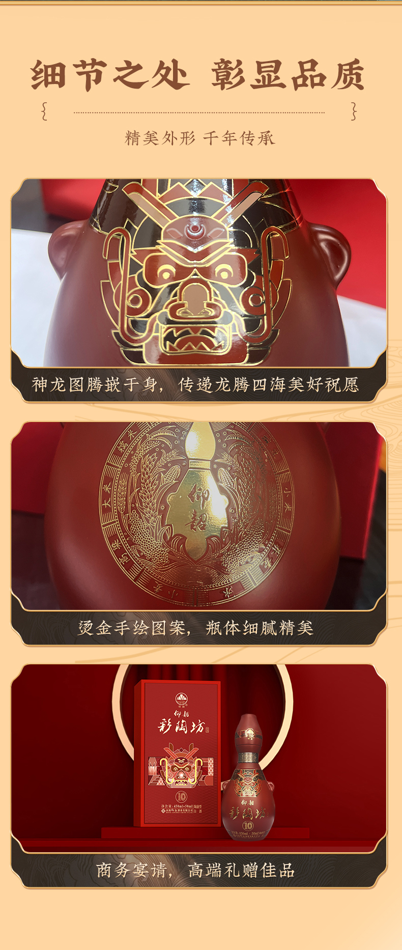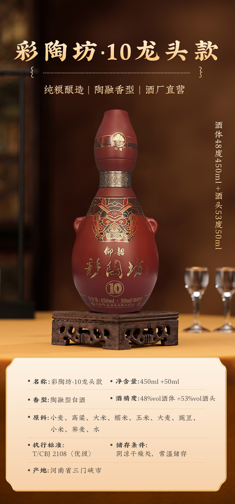 彩陶坊 10 龙头款 48度450ml+53度50ml 整箱六瓶 陶融型白酒
