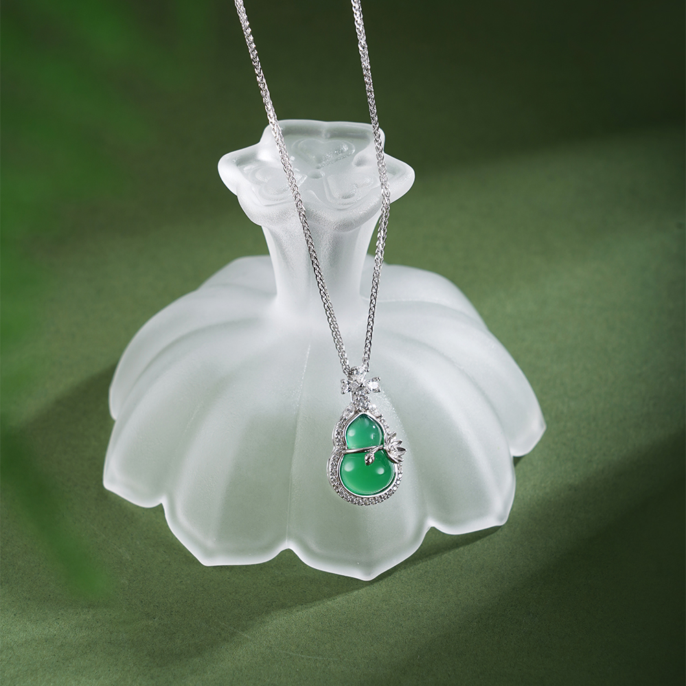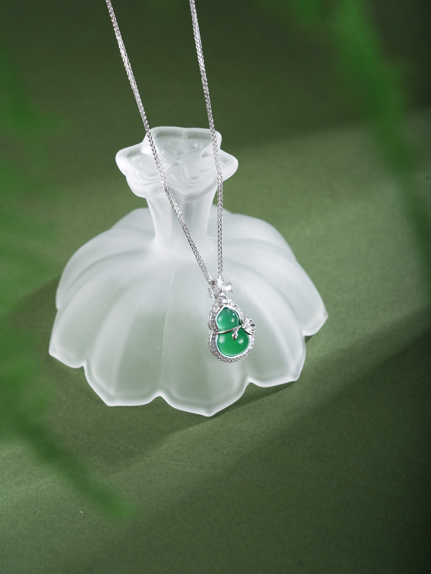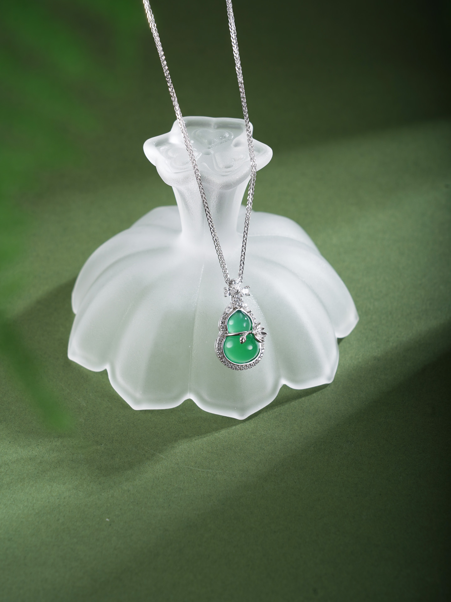 子佩集【福禄年年】银S925套链项链【TL016621】绿玉髓葫芦莲花2602