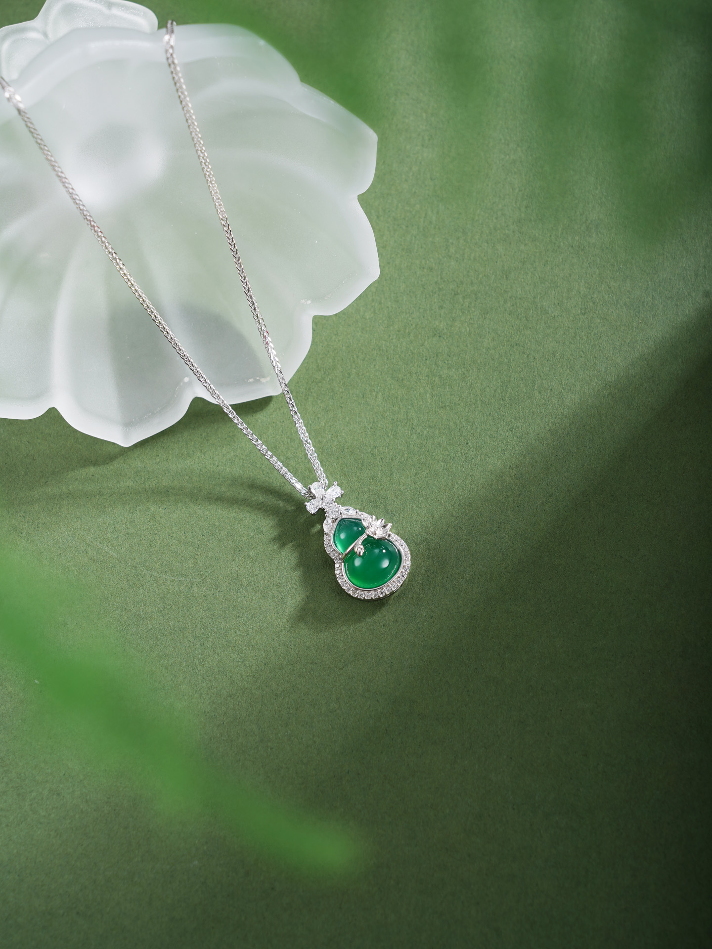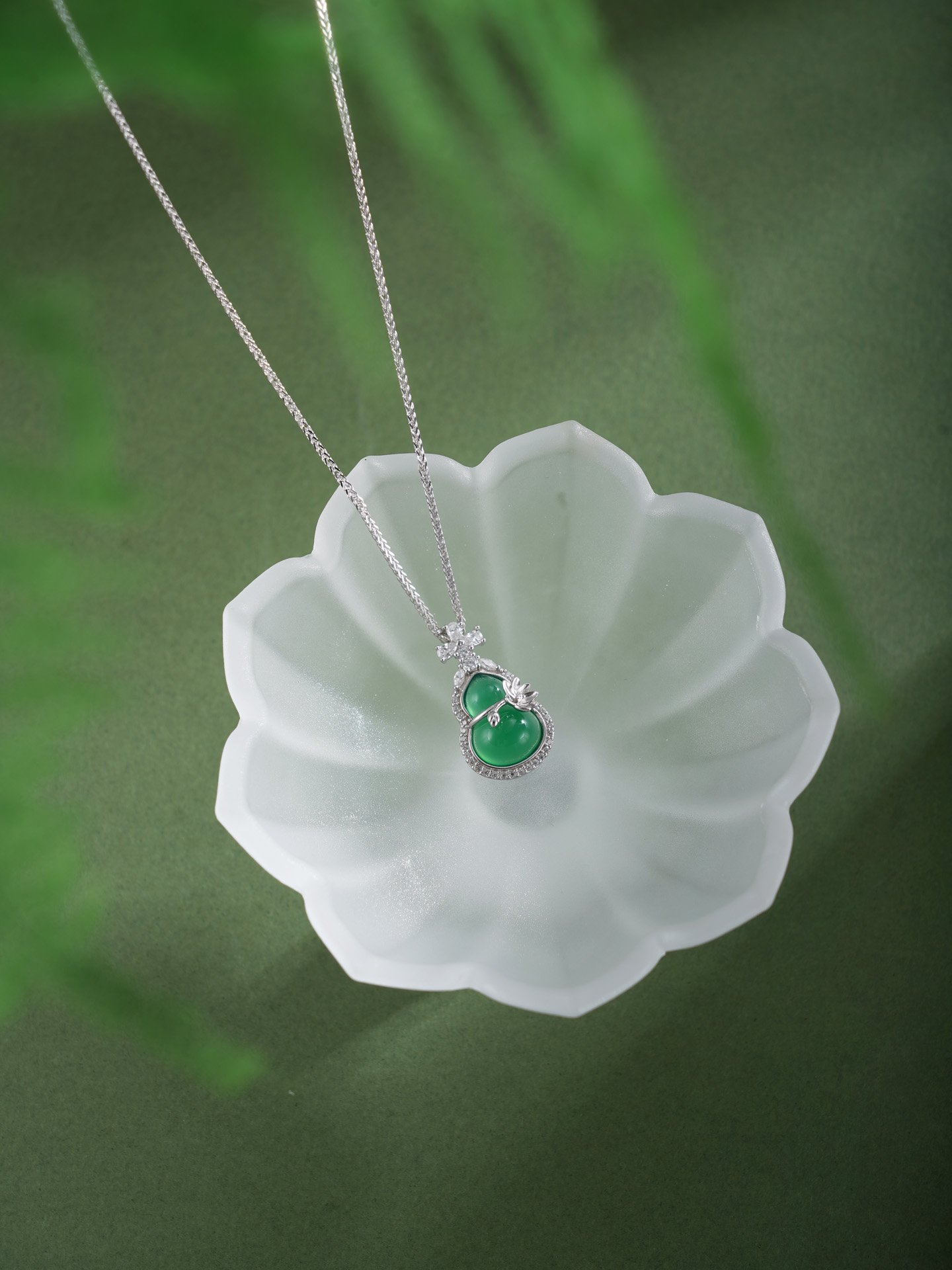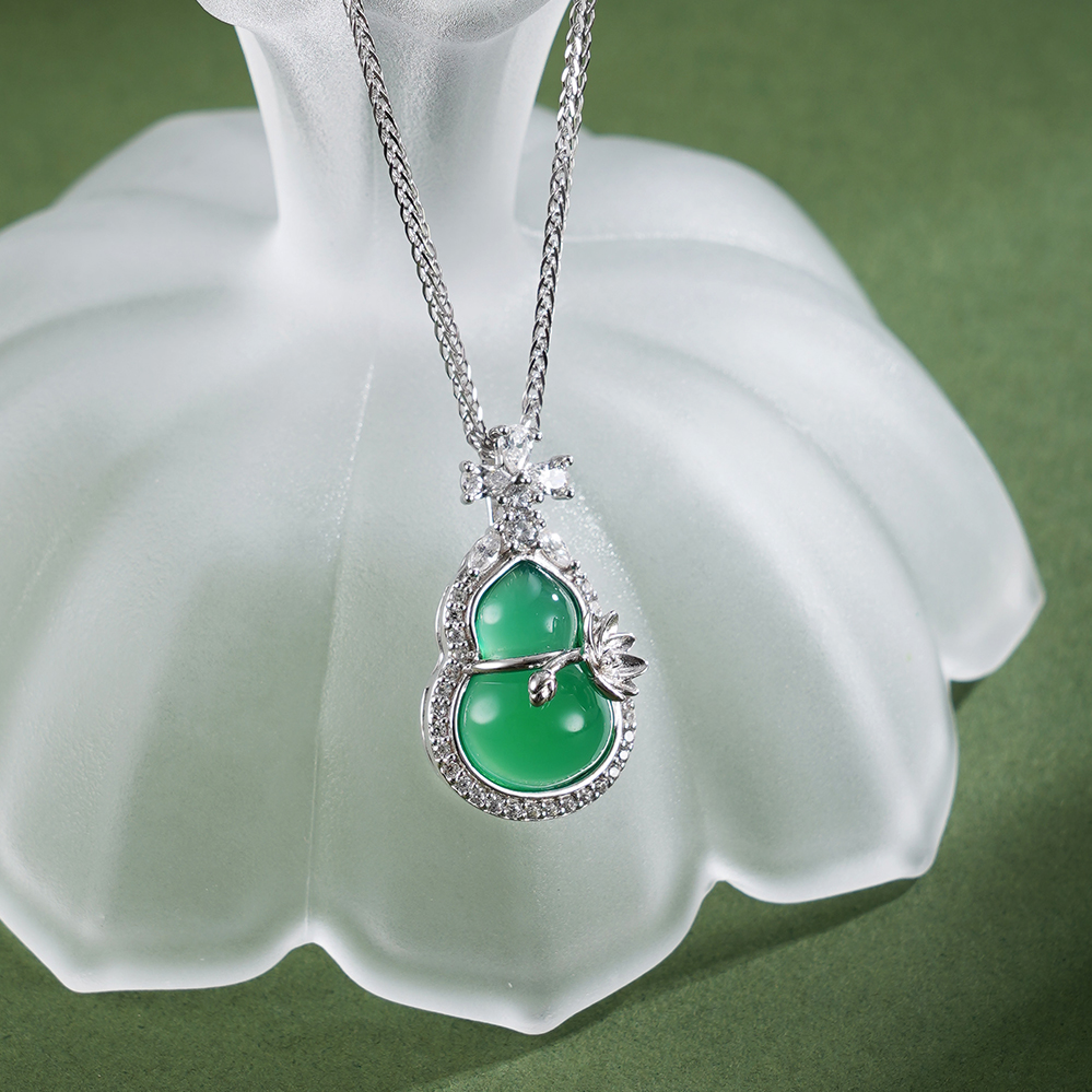 子佩集【福禄年年】银S925套链项链【TL016621】绿玉髓葫芦莲花2602