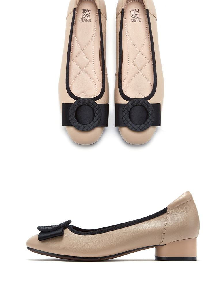 西村名物2021年新款舒软休闲平跟女单鞋浅口百搭舒适牛皮豆豆鞋T21AE11701