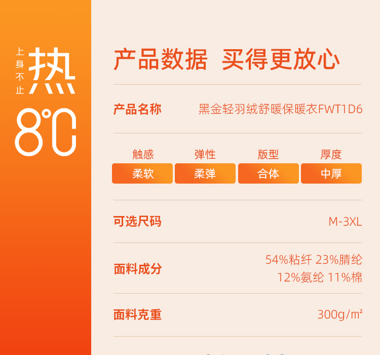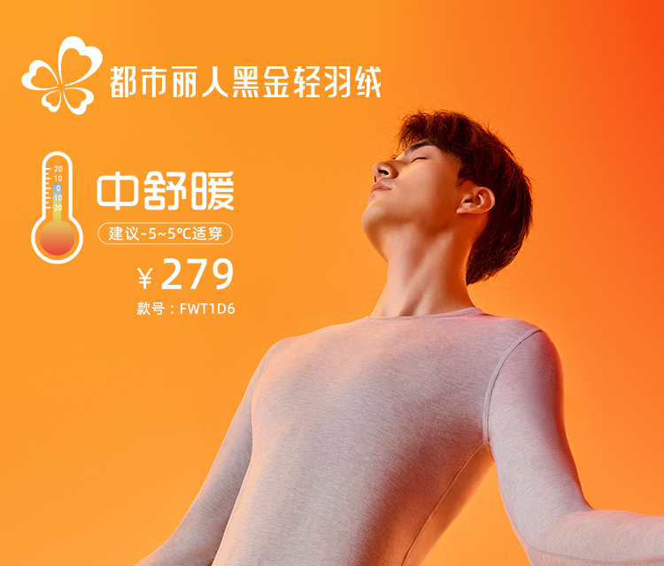 都市丽人黑金.轻羽绒3.0保暖衣套装舒暖轻羽绒长袖长裤男士特殊面料套装FWT1D6